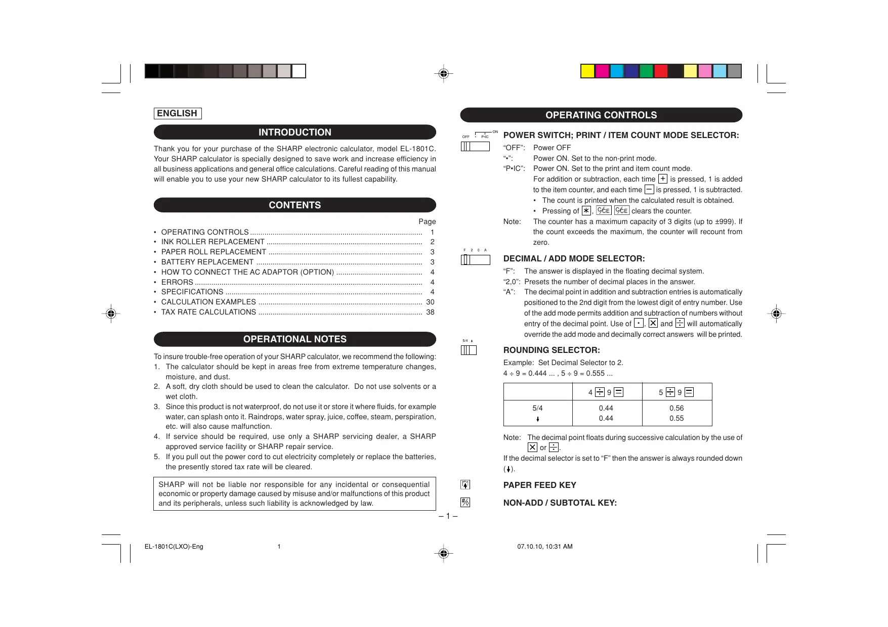 USER MANUAL EL-1801C SHARP