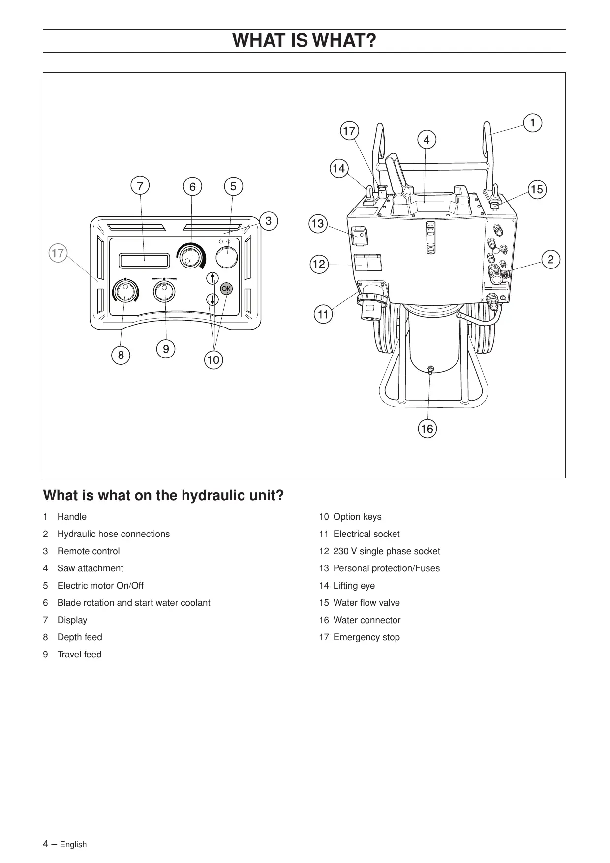 What is what on the hydraulic unit?