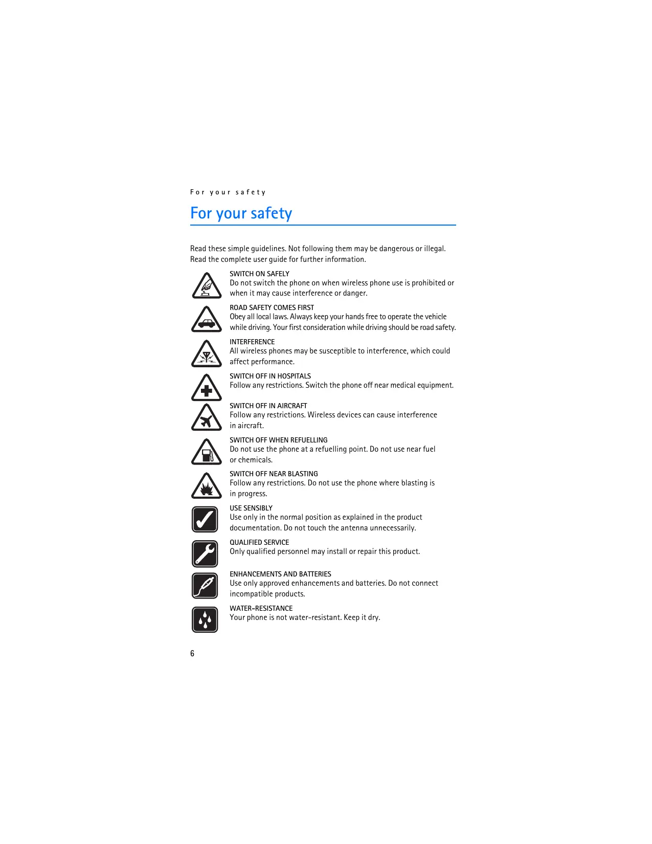 For your safety For your safety Read these simple guidelines. Not following them may be dangerous or illegal. Read the complete user guide for further information. EEE