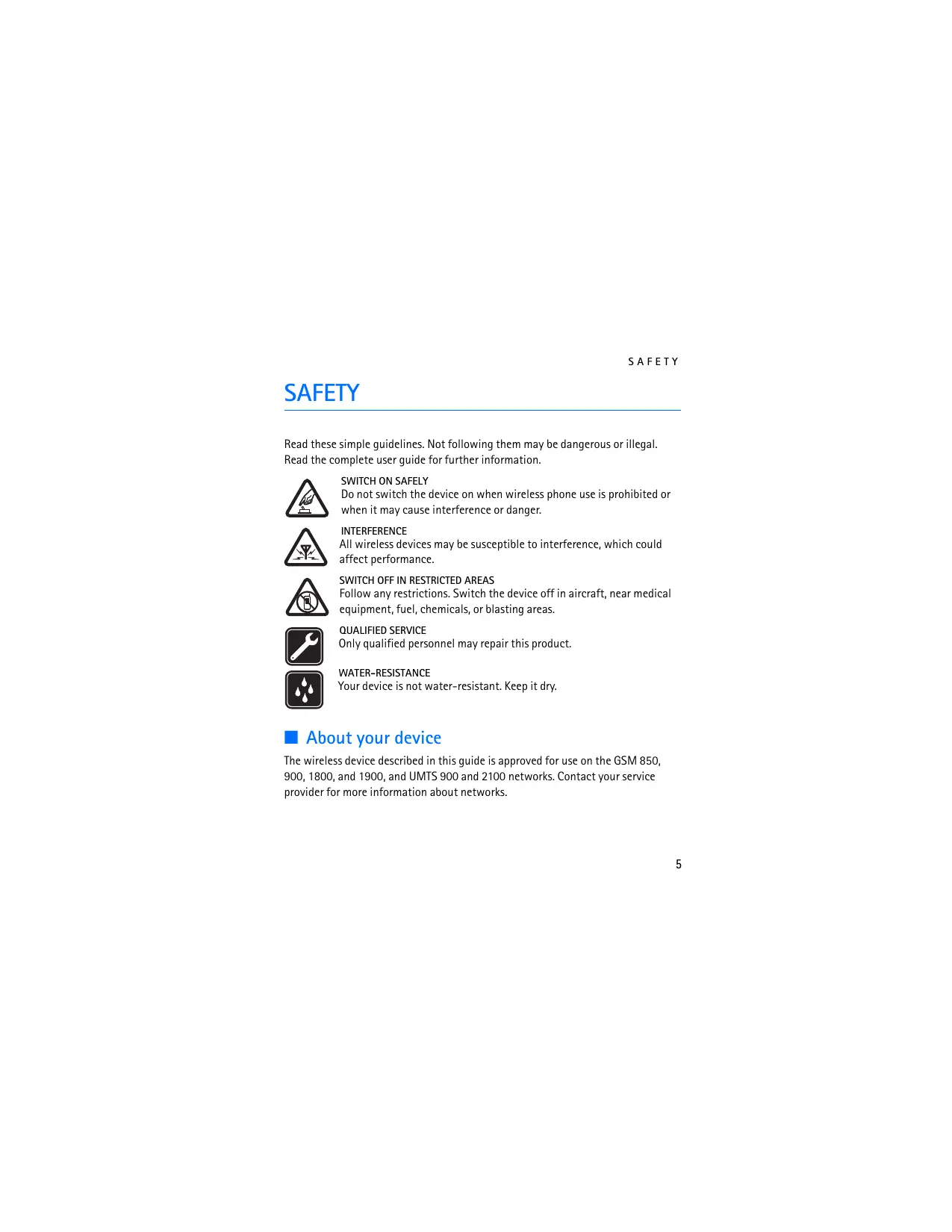 SAFETY SAFETY Read these simple guidelines. Not following them may be dangerous or illegal. Read the complete user guide for further information. (4)