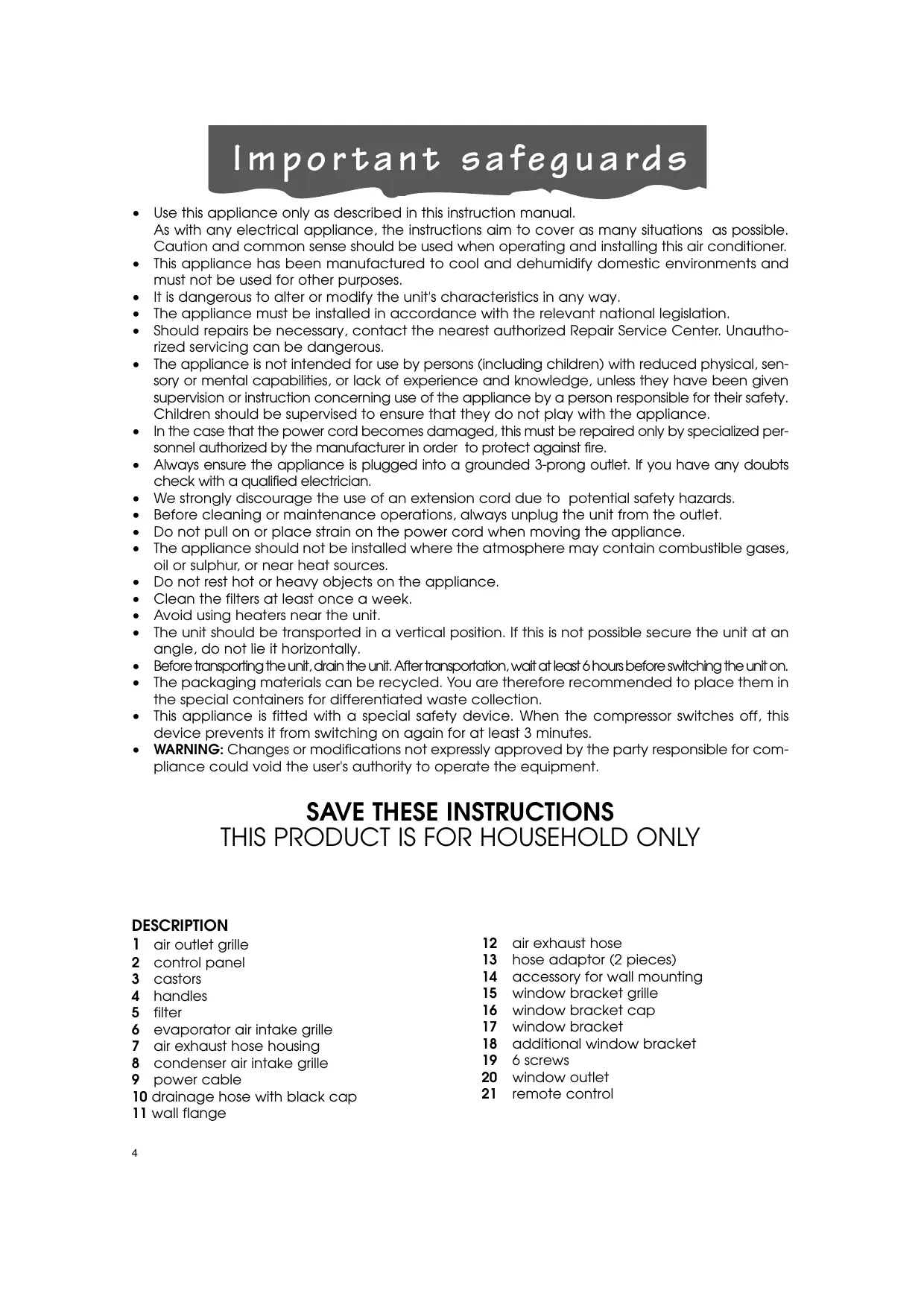 SAVE THESE INSTRUCTIONS THIS PRODUCT IS FOR HOUSEHOLD ONLY