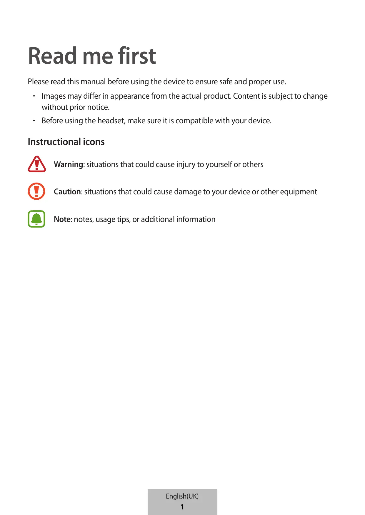 - Before using the headset, make sure it is compatible with your device. Instructional icons