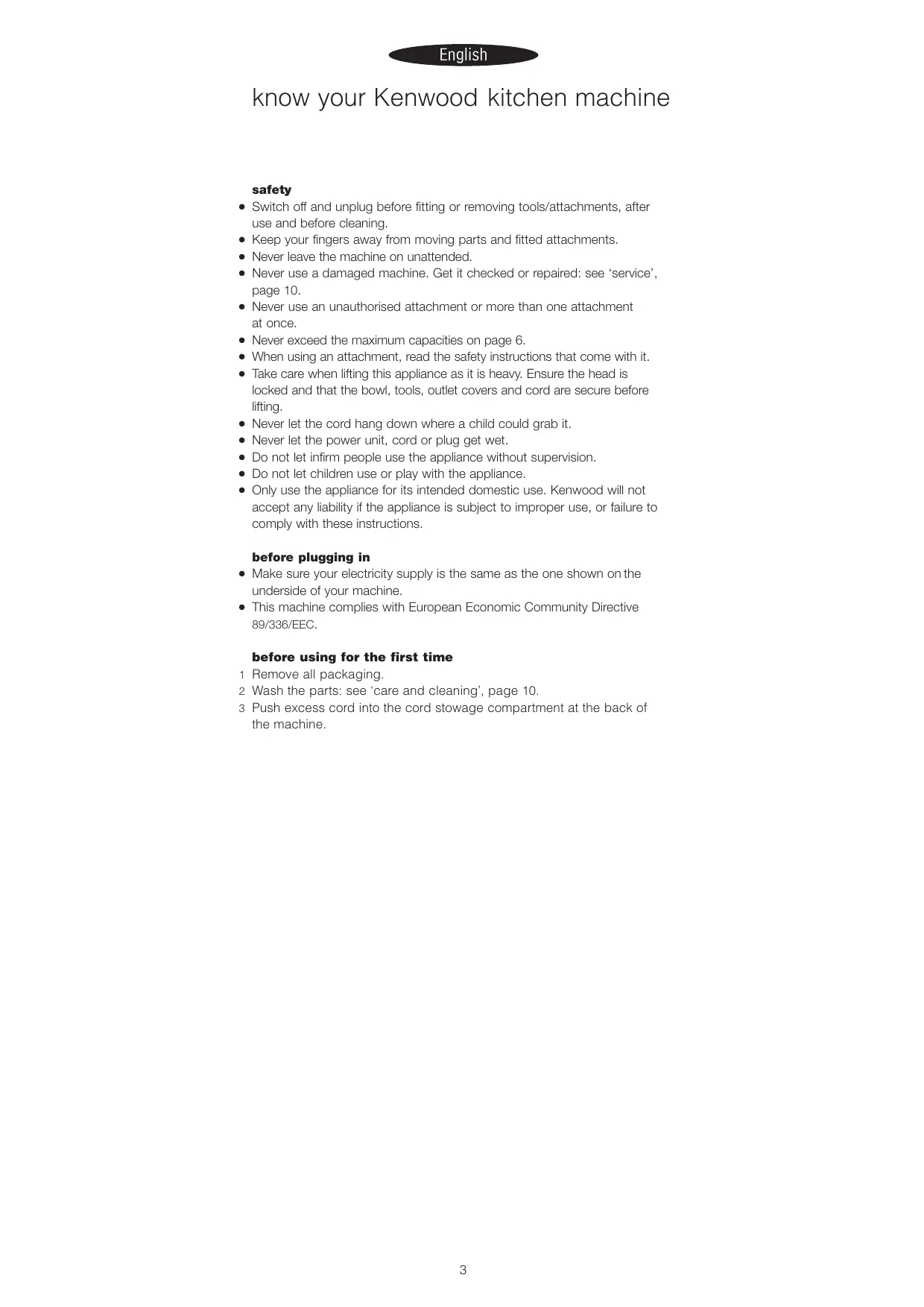Only use the appliance for its intended domestic use. Kenwood will not accept any liability if the appliance is subject to improper use, or failure to comply with these instructions.
