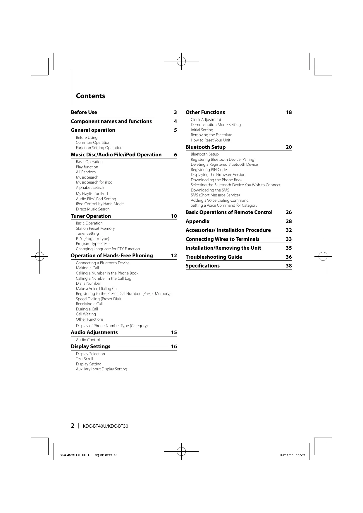 8 | KDC-BT4OU/KDC-BT30