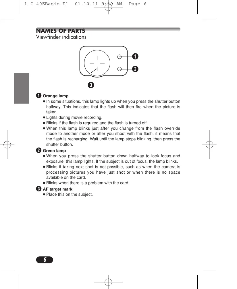 NAMES OF PARTS Viewfinder indications