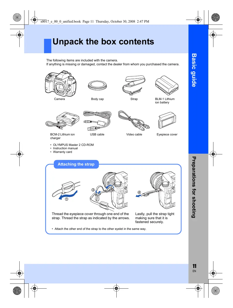 The following items are included with the camera. 2 Hanything is missing or damaged, contact the dealer from whom you purchased the camera. 9,