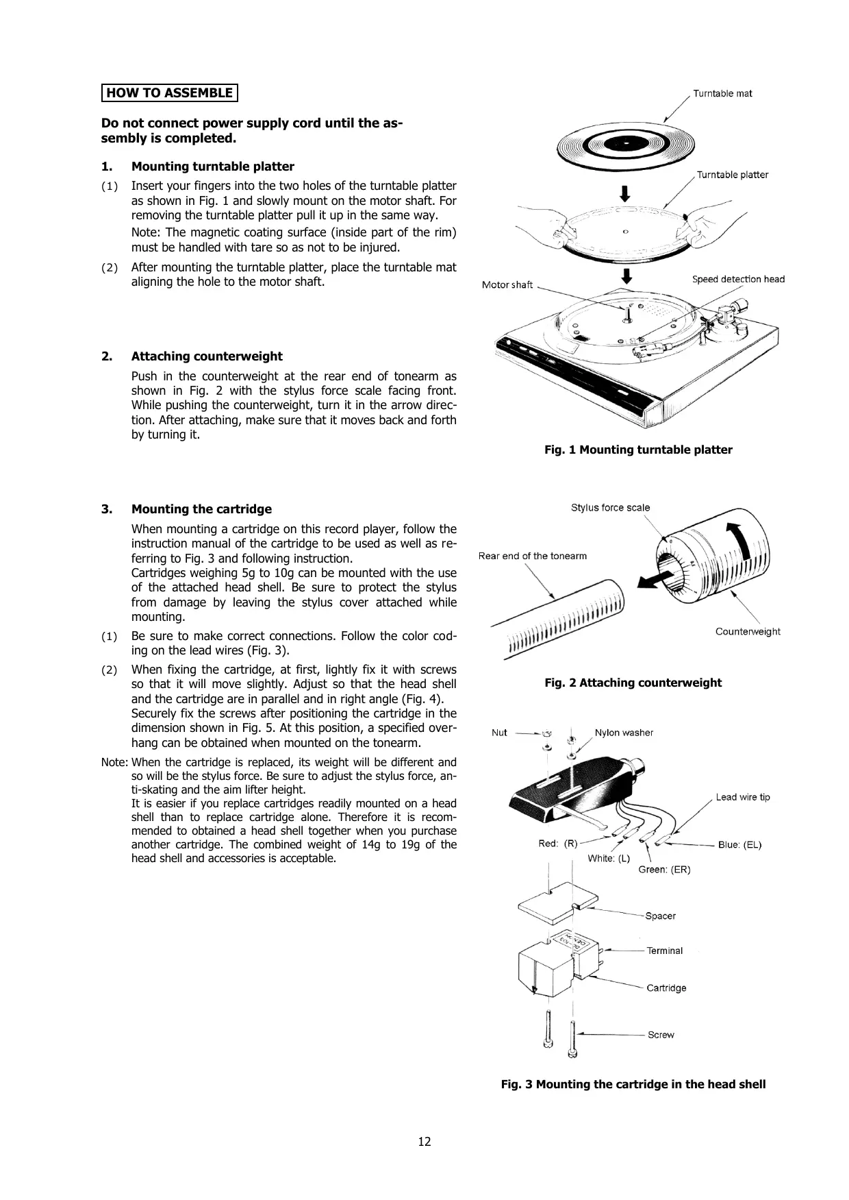 If you wish to use other cartridges, refer to "3. Mounting the cartridge" on Page 10 of the booklet. When the cartridge is replaced, the height of arm lifter must be adjusted. Refer also to "3. Adjustment of arm lifter" on Page 16.