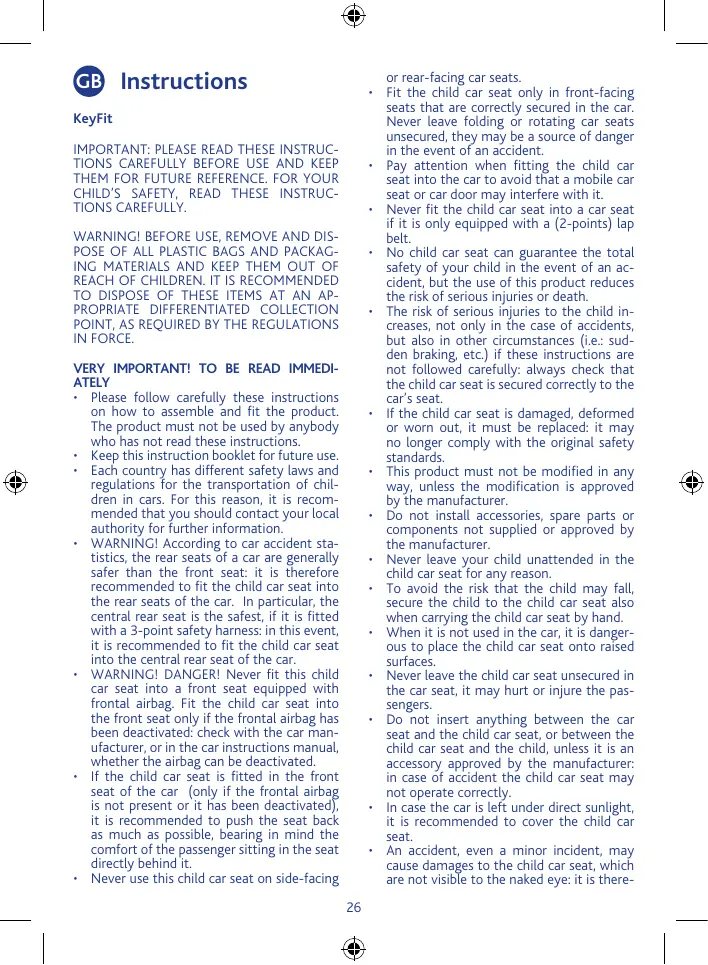 KEY FIT - Siège auto pour bébé CHICCO - Free user manual and instructions