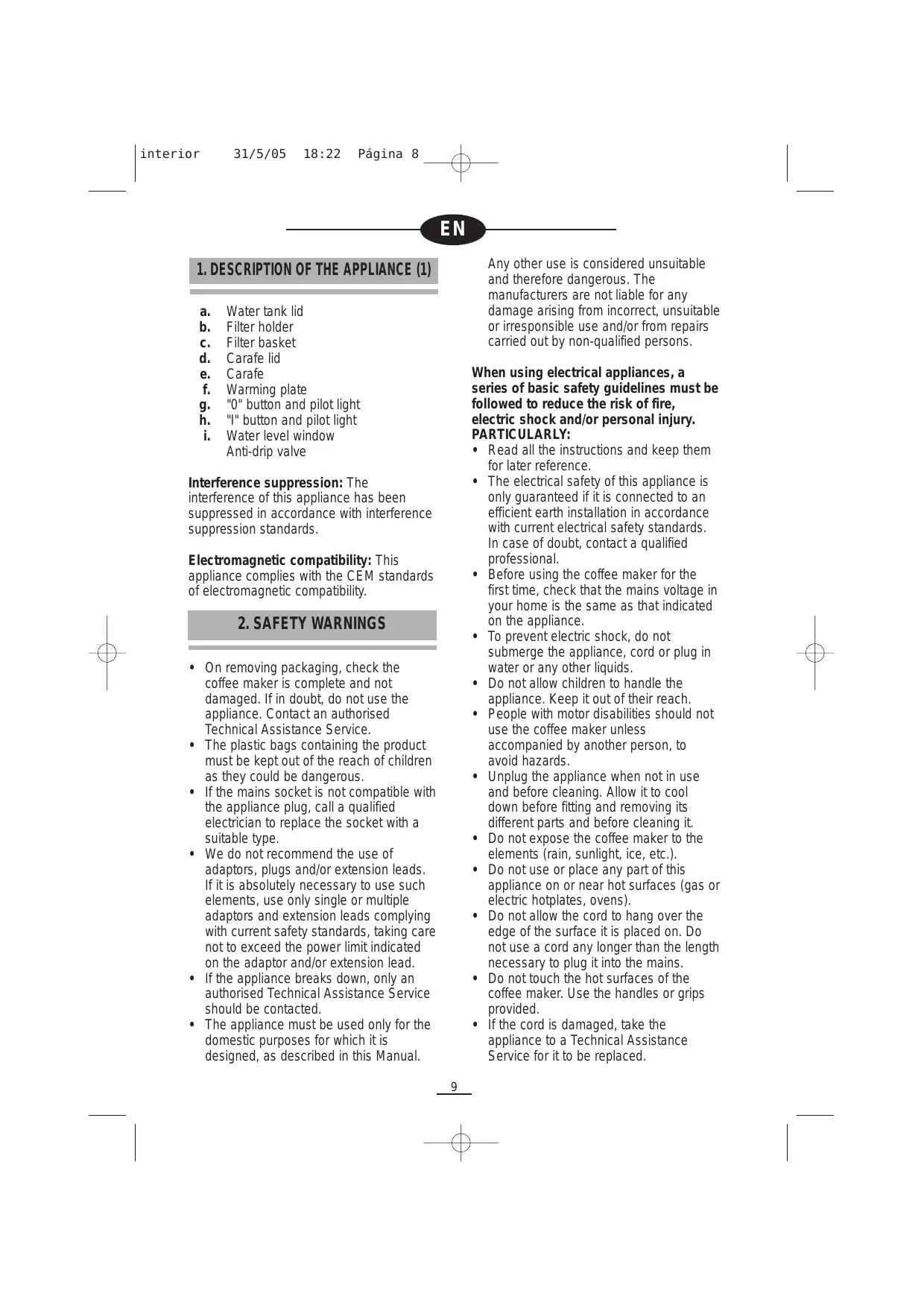 1.DESCRIPTION OF THE APPLIANCE (1)