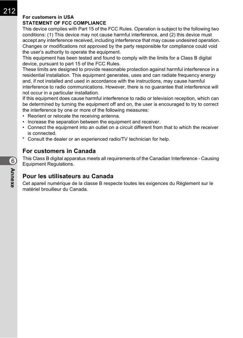 • Les garanties locales disponibles chez les distributeurs PENTAX de certains pays peuvent remplacer cette garantie. Par conséquent, nous vous conseillons de lire attentivement la carte de garantie fournie avec votre produit au moment de l’achat ou de contacter le distributeur PENTAX de votre pays afin d’obtenir de plus amples informations et de recevoir une copie de la garantie.