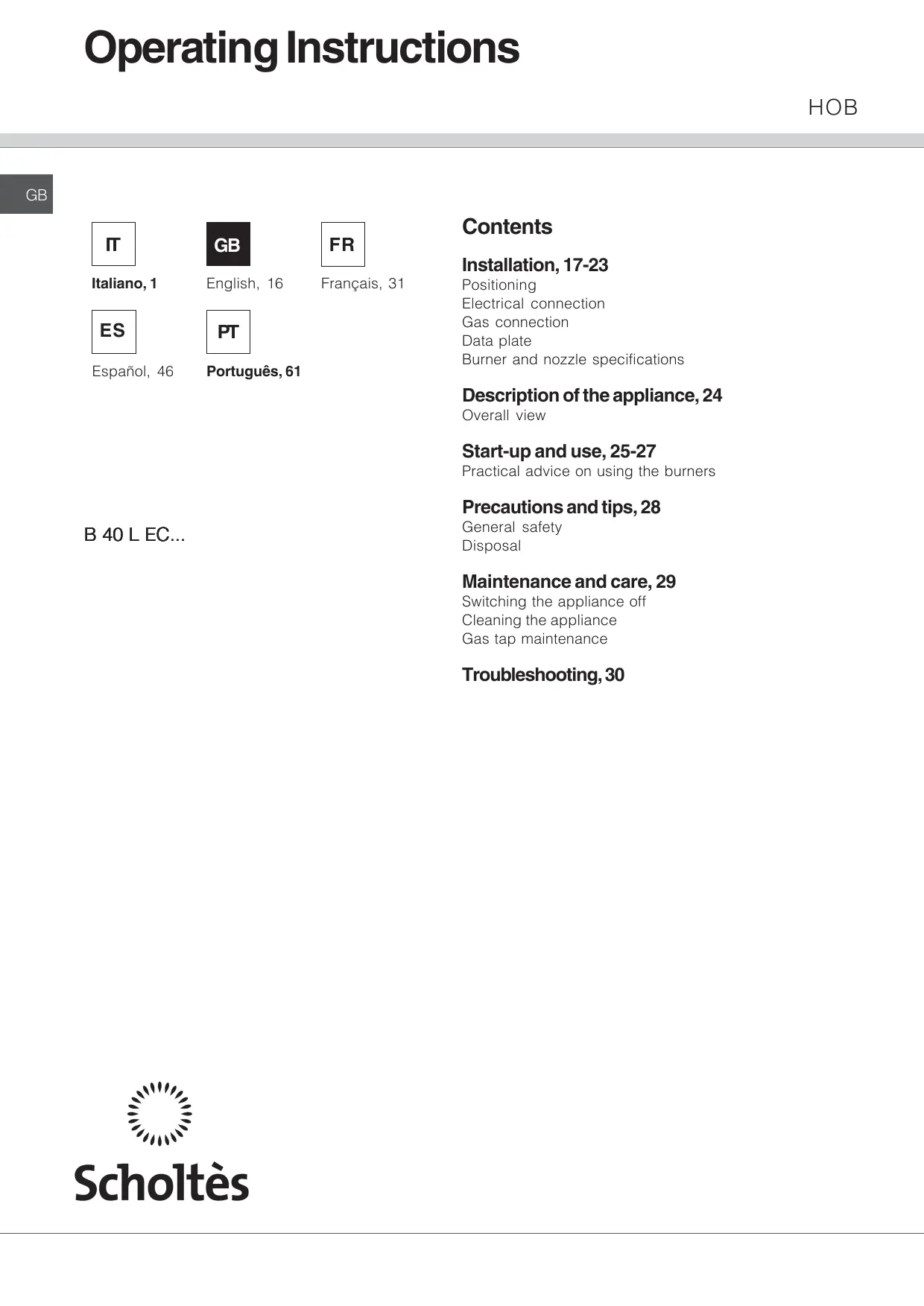 Find the device manual for free B 40 L EC F SCHOLTES in PDF.