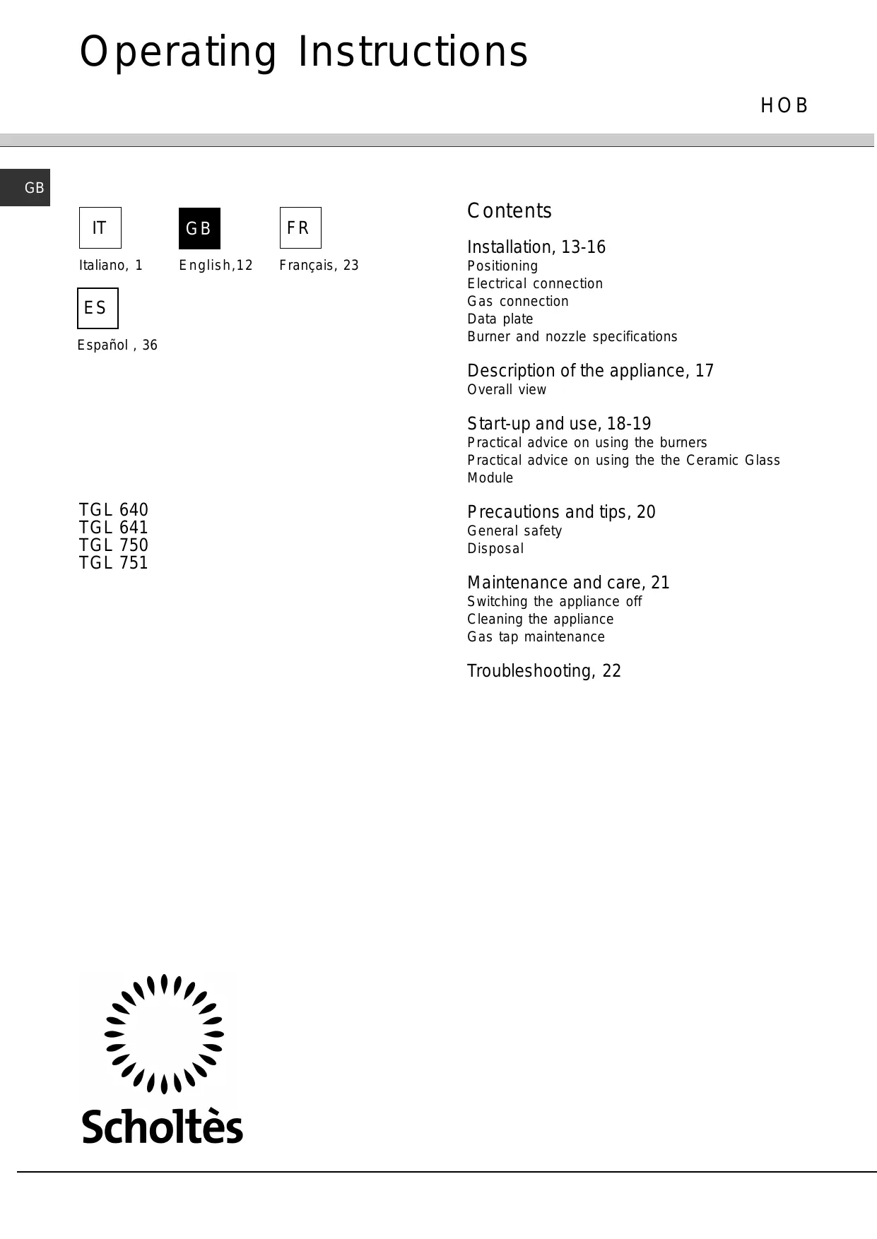 TGL 751 - Boiler SCHOLTES - Free user manual and instructions