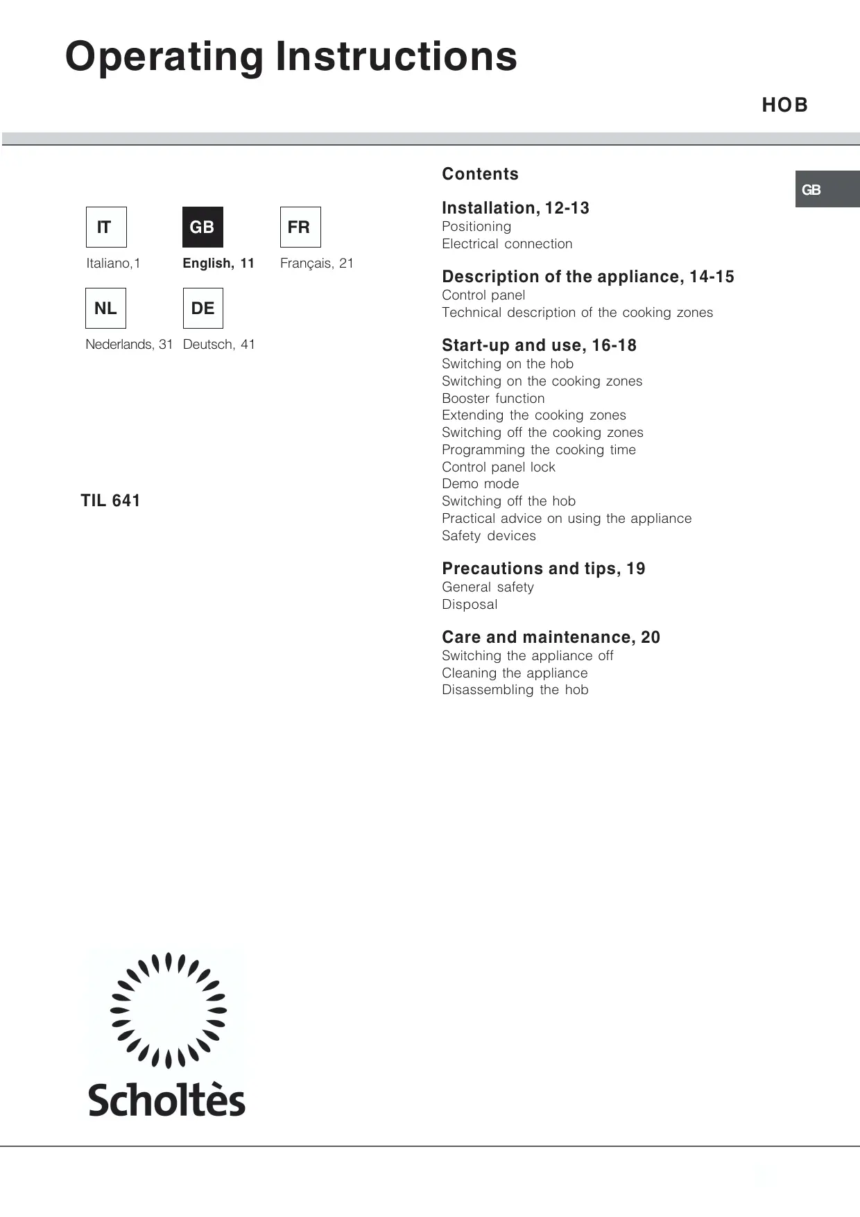 TIL 641 - Hob SCHOLTES - Free user manual and instructions