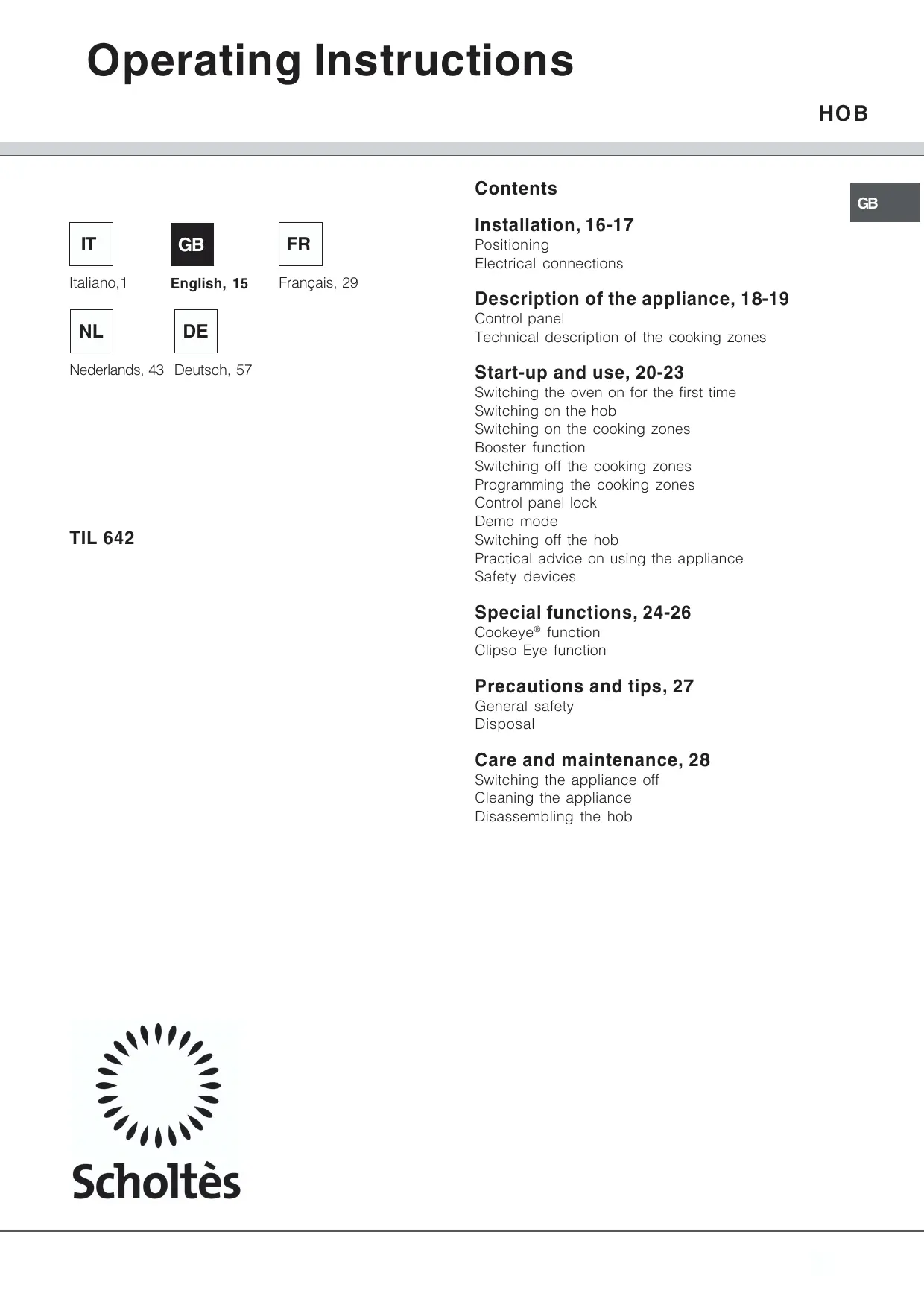 TIL 642 - Hob SCHOLTES - Free user manual and instructions