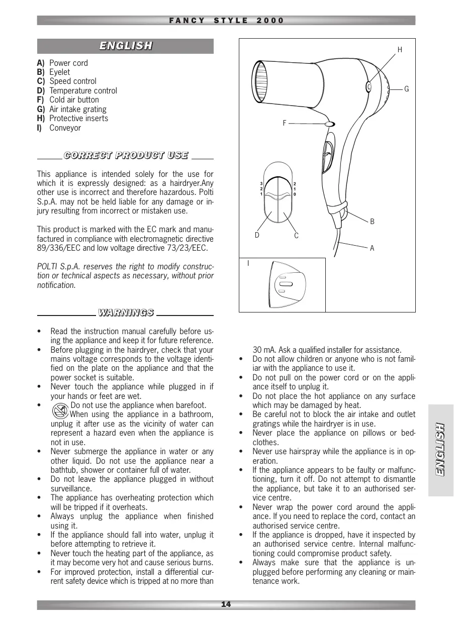 FANCY STYLE 2000 - Hair dryer POLTI - Free user manual and instructions