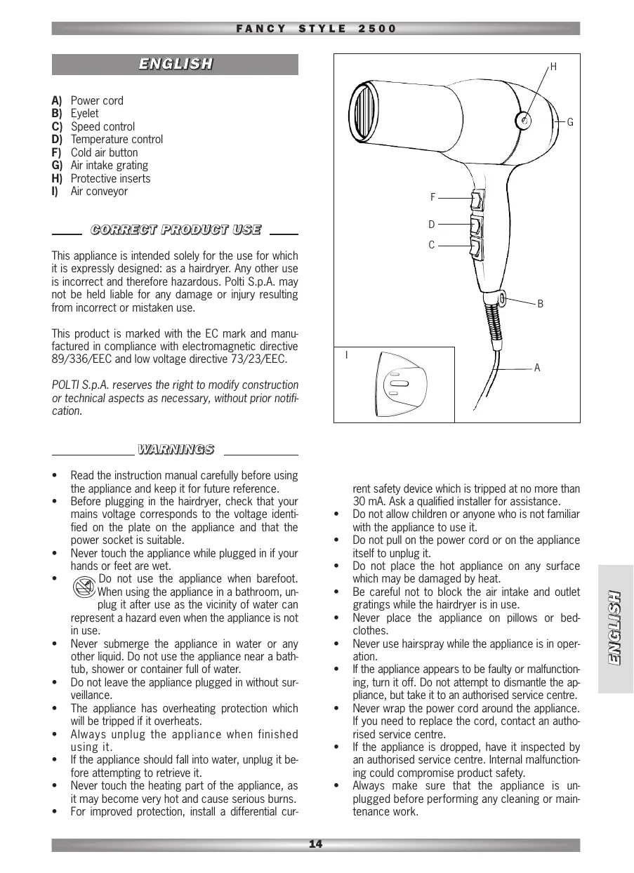 FANCY STYLE 2500 - Hair dryer POLTI - Free user manual and instructions