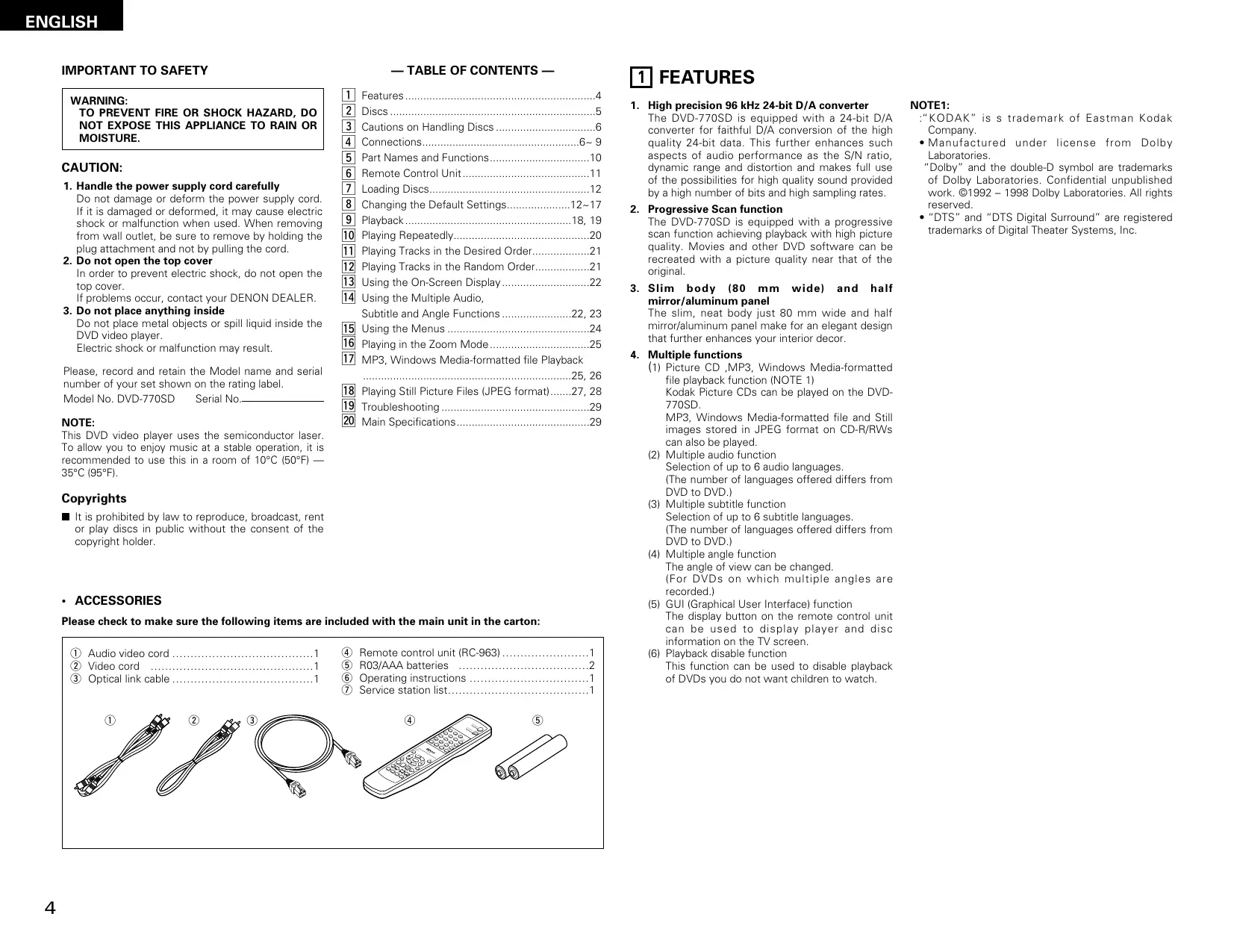 - The DVD-770SD is compatible with image data stored in JPEG format, but Denon does not guarantee that all image data stored in JPEG format can be viewed.