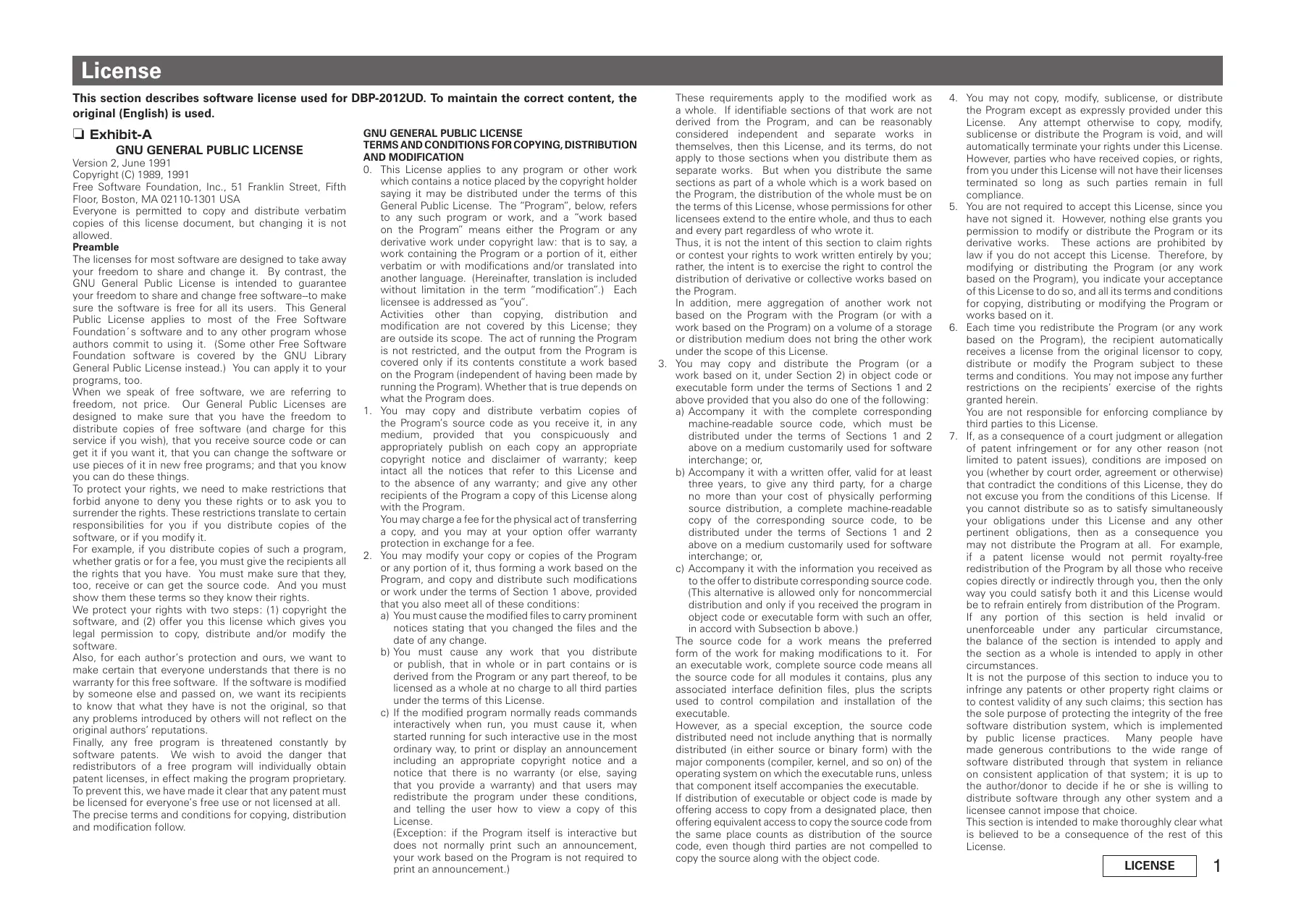 License This section describes software license used for DBP-2012UD. To maintain the correct content, the original (English) is used.