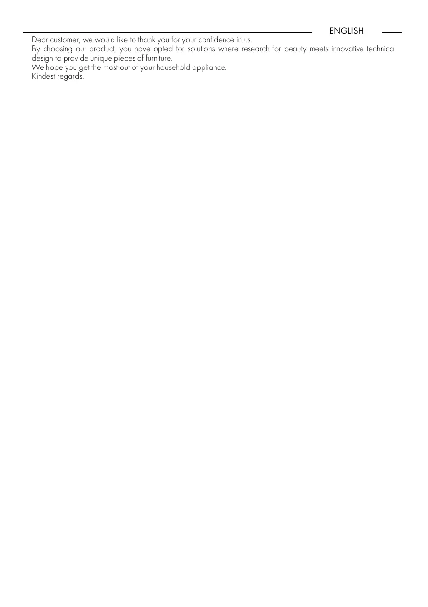 ENGLISH By choosing our product, you have opted for solutions where research for beauty meets innovative technical design to provide unique pieces of furniture. We hope you get the most out of your household appliance. Kindest regards.