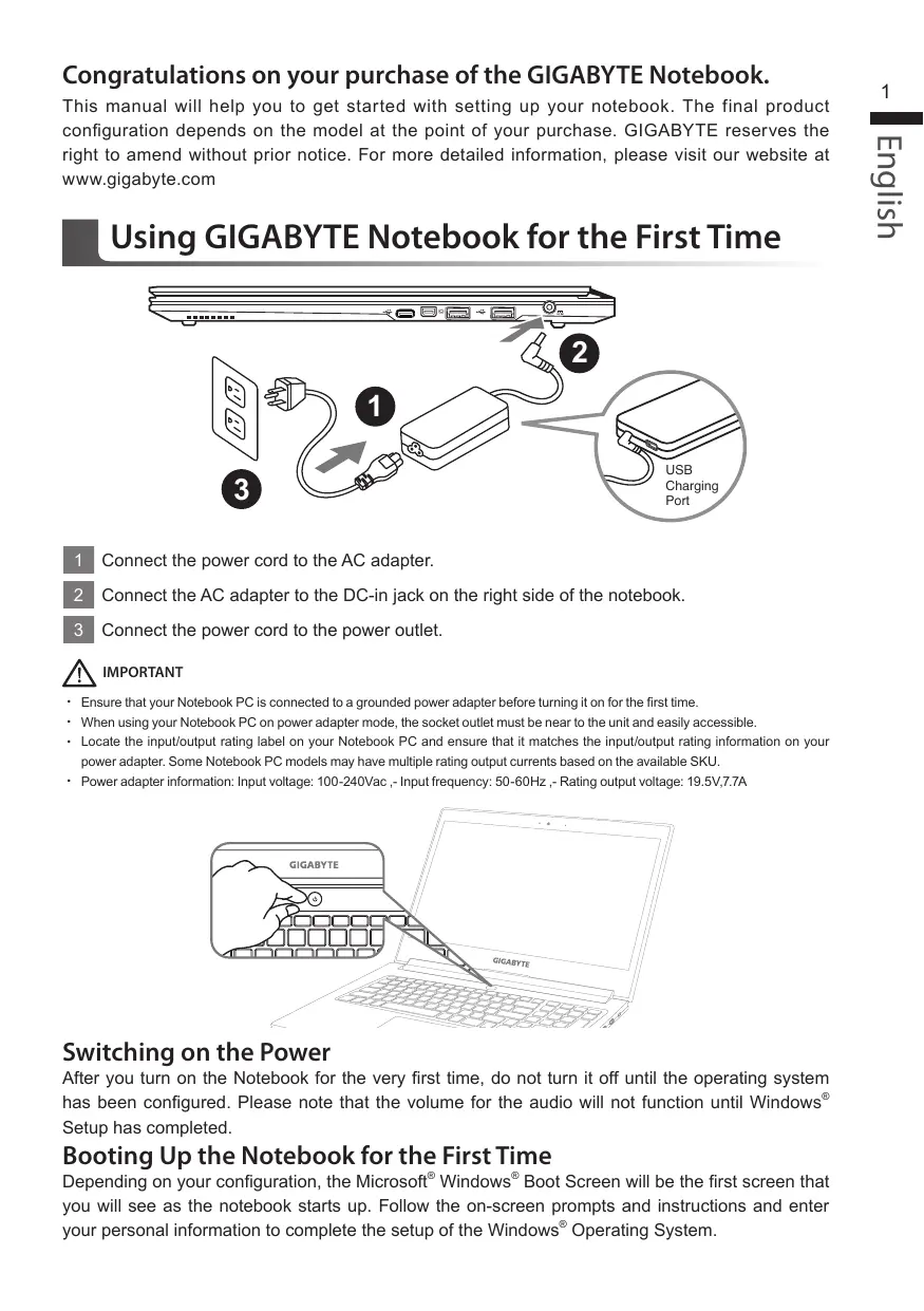 Congratulations on your purchase of the GIGABYTE Notebook.