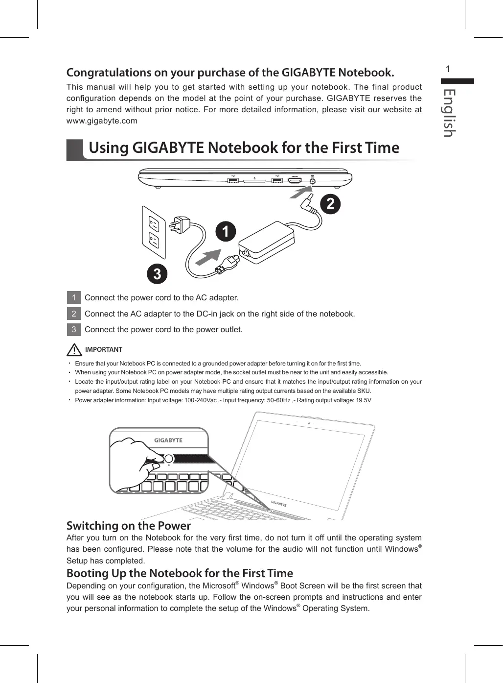Congratulations on your purchase of the GIGABYTE Notebook.