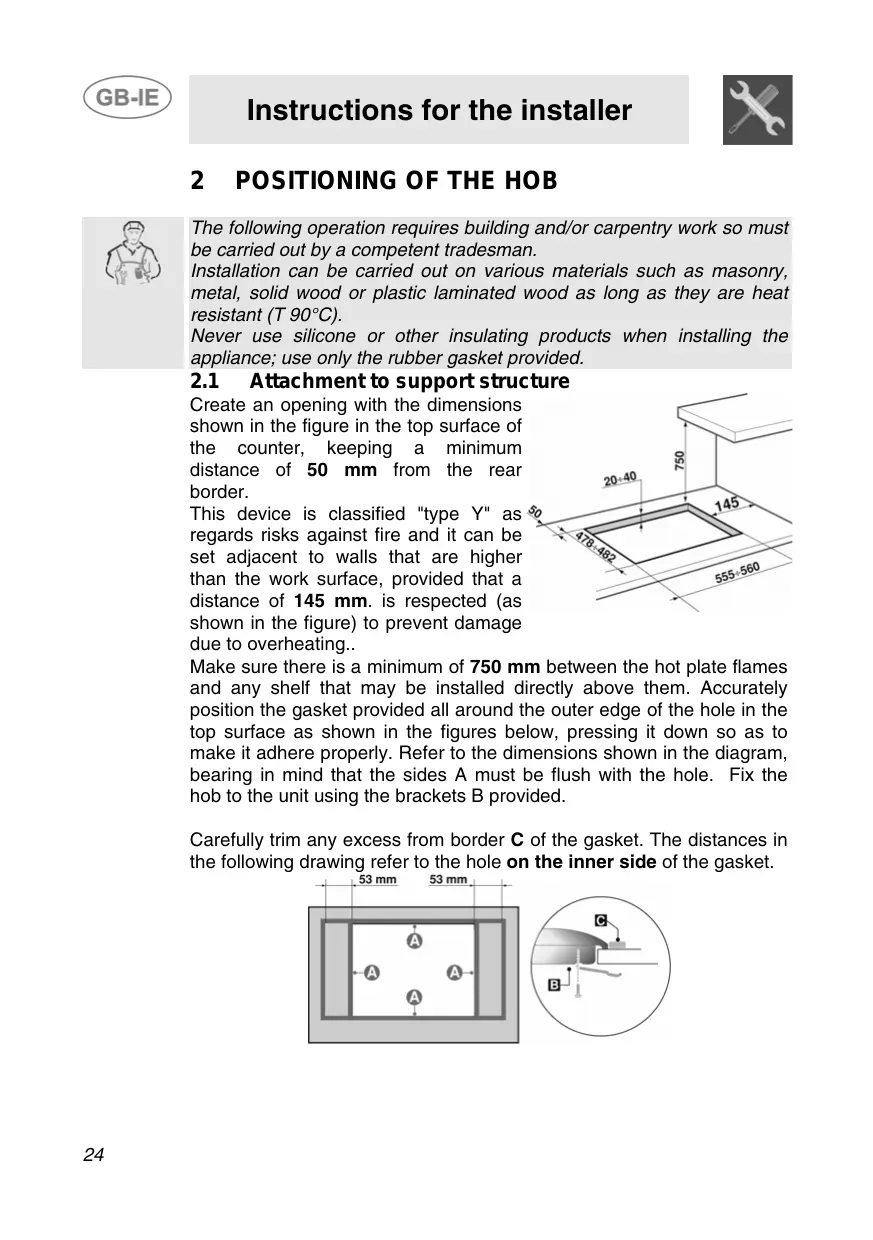 2 POSITIONING OF THE HOB