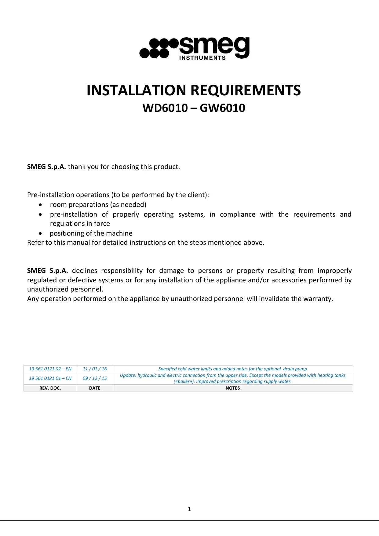 Download the instructions for your Dishwasher in PDF format for free! Find your manual GW6010M36 - MANUALE D'INSTALLAZIONE - SMEG and take your electronic device back in hand. On this page are published all the documents necessary for the use of your device. GW6010M36 - MANUALE D'INSTALLAZIONE by SMEG.