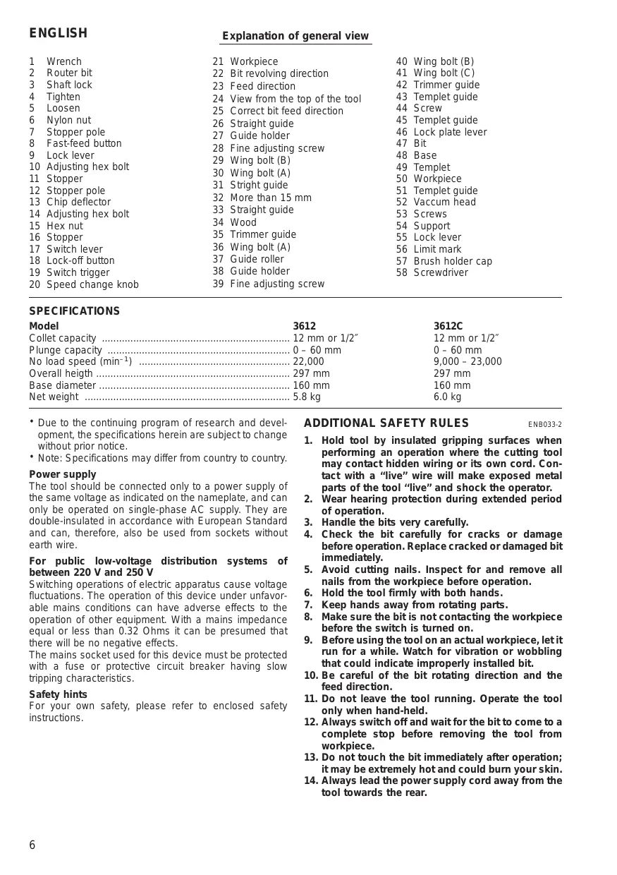* Use only router bits of which the maximum speed, as indicated on the bit, does exceed the maximum speed of the router.