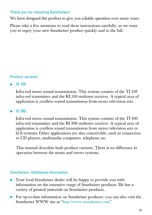 - Your local Sennheiser dealer will be happy to provide you with information on the extensive range of Sennheiser products. He has a variety of printed materials on Sennheiser products.