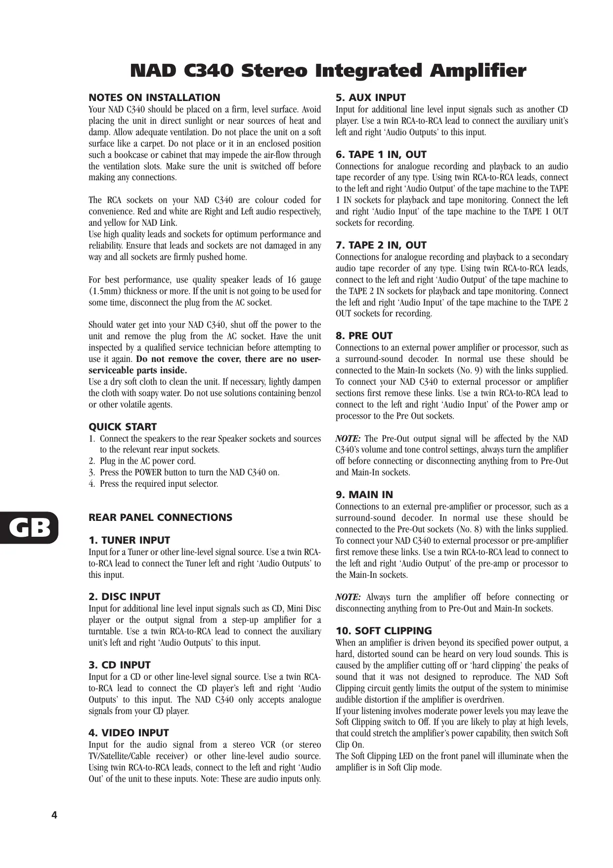 Download the instructions for your Amplificateur intégré in PDF format for free! Find your manual C340 - NAD and take your electronic device back in hand. On this page are published all the documents necessary for the use of your device. C340 by NAD.
