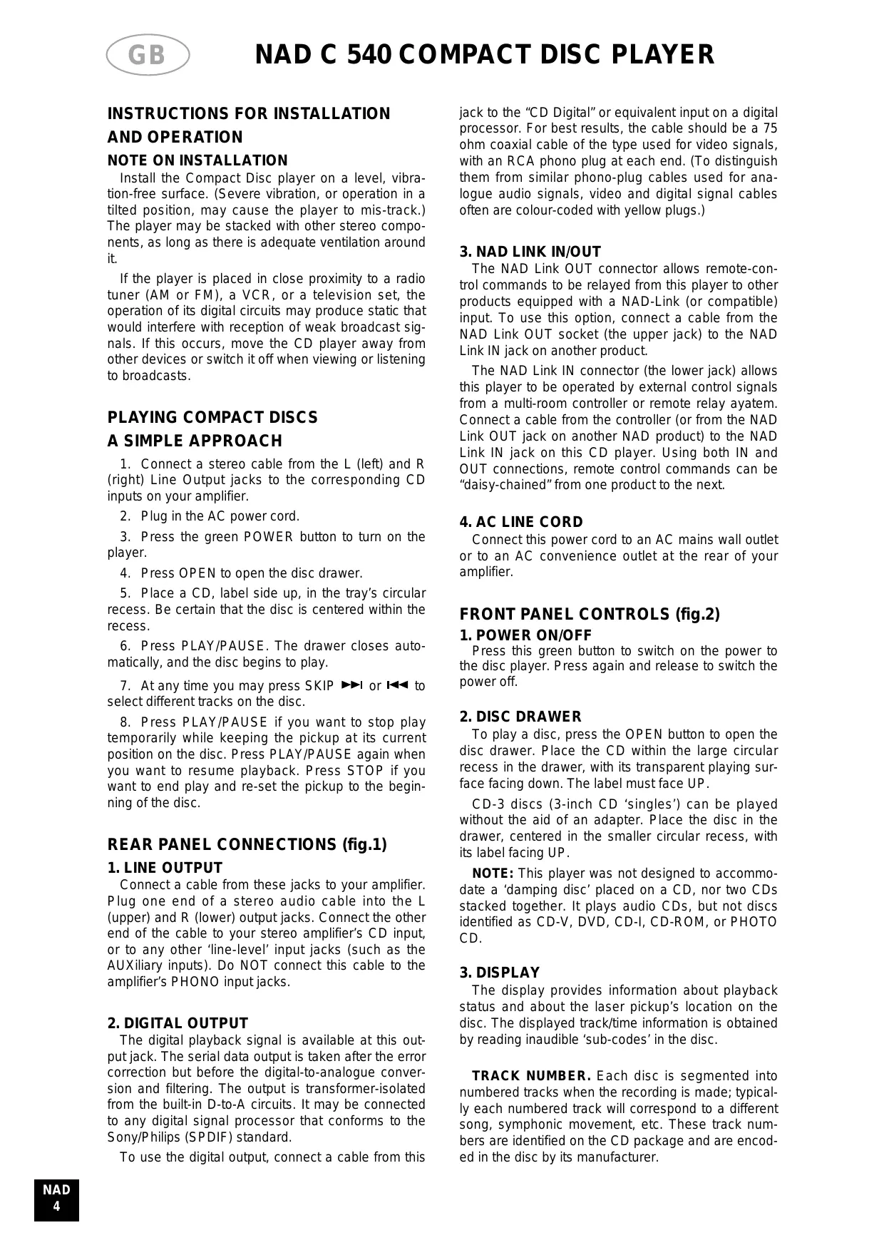 Download the instructions for your Lecteur de CD in PDF format for free! Find your manual C540 - NAD and take your electronic device back in hand. On this page are published all the documents necessary for the use of your device. C540 by NAD.