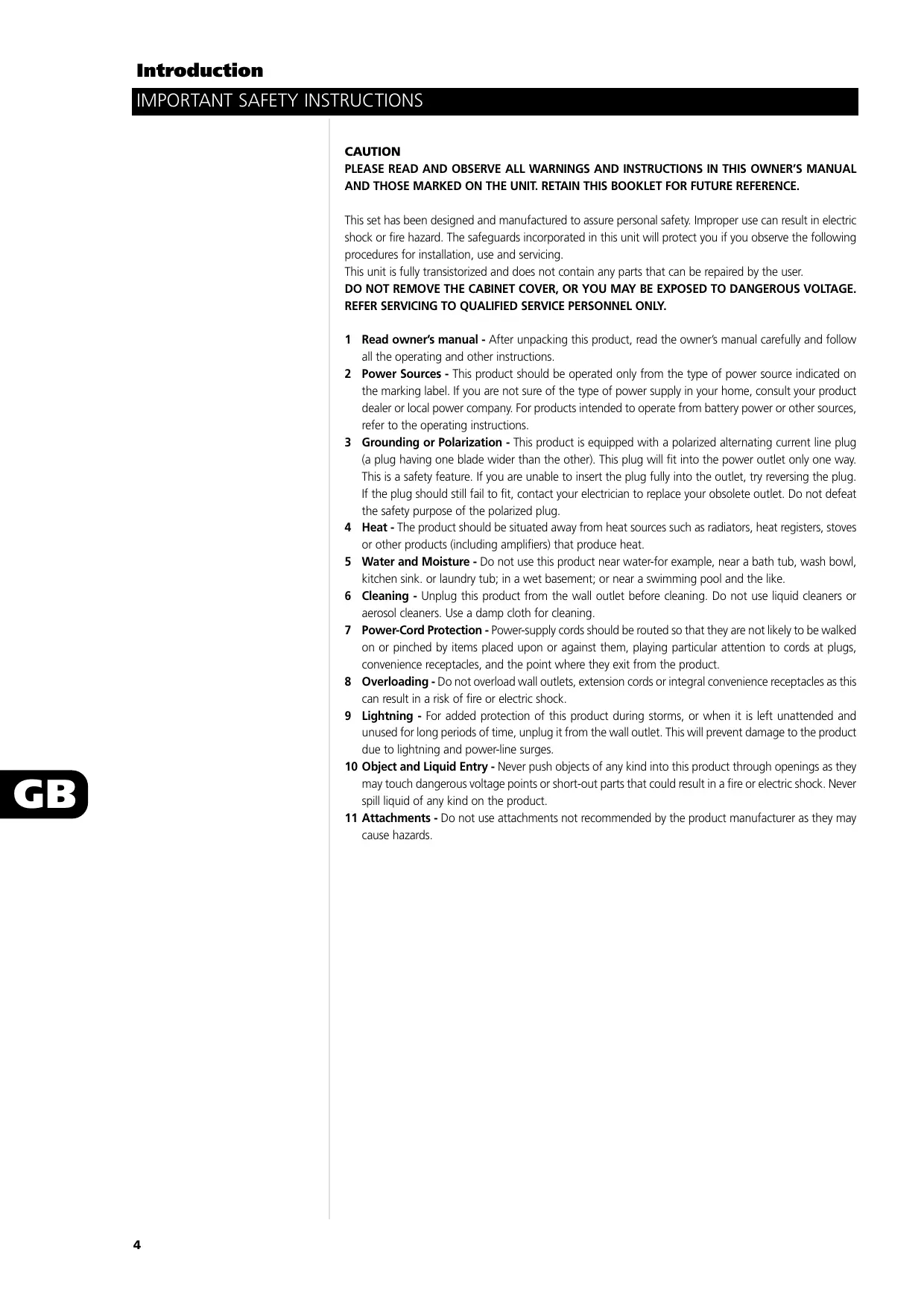 11 Pénétration d'objets ou de liquides - N'insérez jamais d'objet de quelque type que ce soit par les ouvertures de l'appareil, car de tels objets risqueraient de toucher des tensions électriques dangereuses où de court-circuiter des éléments pouvant provoquer un choc électrique ou un incendie. Ne renversez jamais de liquide sur l'appareil.