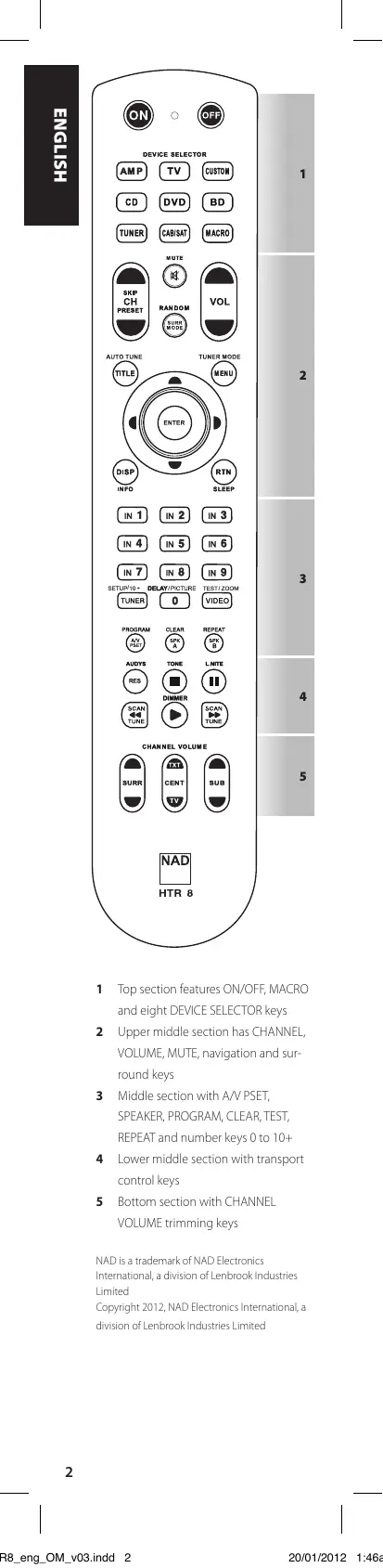 Find the device manual for free HTR8 LEARNING REMOTE CONTROL NAD in PDF.