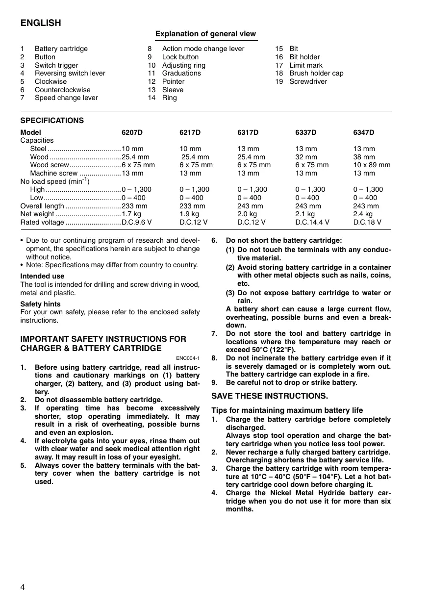 Download the instructions for your Drill in PDF format for free! Find your manual 6317 DWFE, 6337 DWFE, 6347 DWFE - MAKITA and take your electronic device back in hand. On this page are published all the documents necessary for the use of your device. 6317 DWFE, 6337 DWFE, 6347 DWFE by MAKITA.