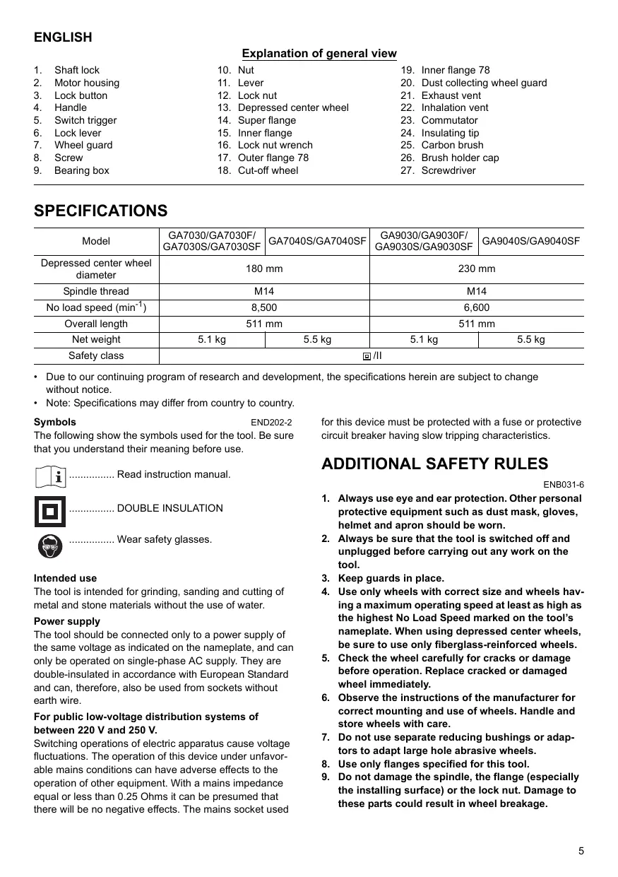 Download the instructions for your Meuleuse in PDF format for free! Find your manual GA 9030X01 - MAKITA and take your electronic device back in hand. On this page are published all the documents necessary for the use of your device. GA 9030X01 by MAKITA.