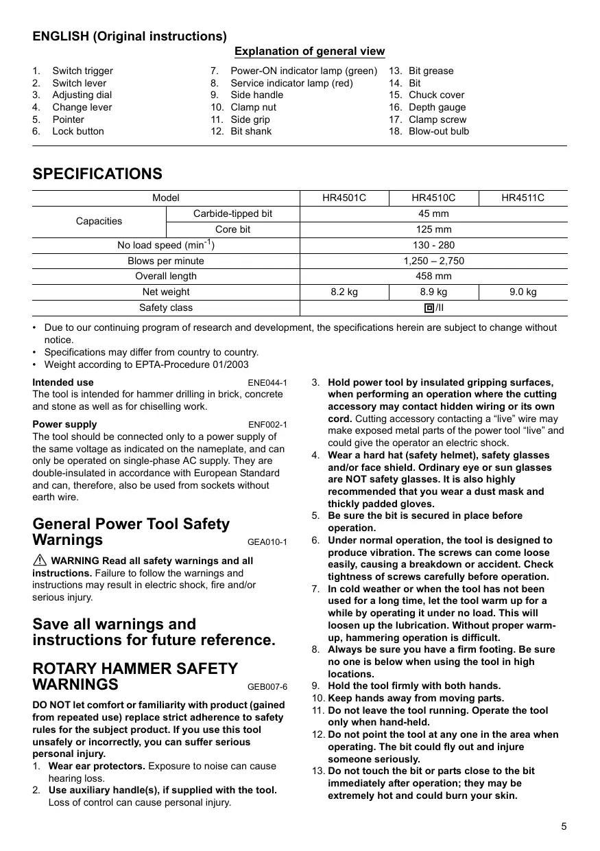 HR 4501 C - Jackhammer MAKITA - Free user manual and instructions
