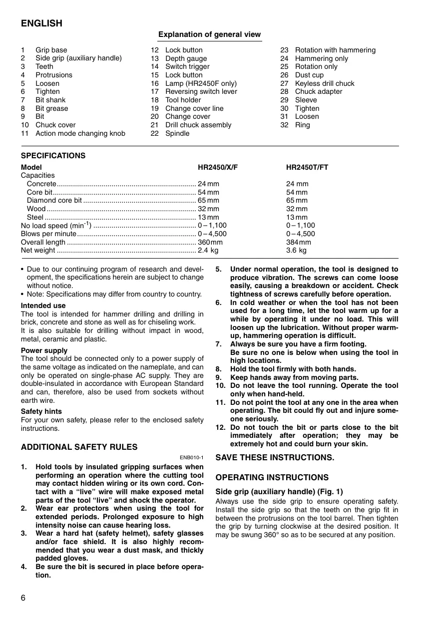 HR2450X8 - Jackhammer MAKITA - Free user manual and instructions