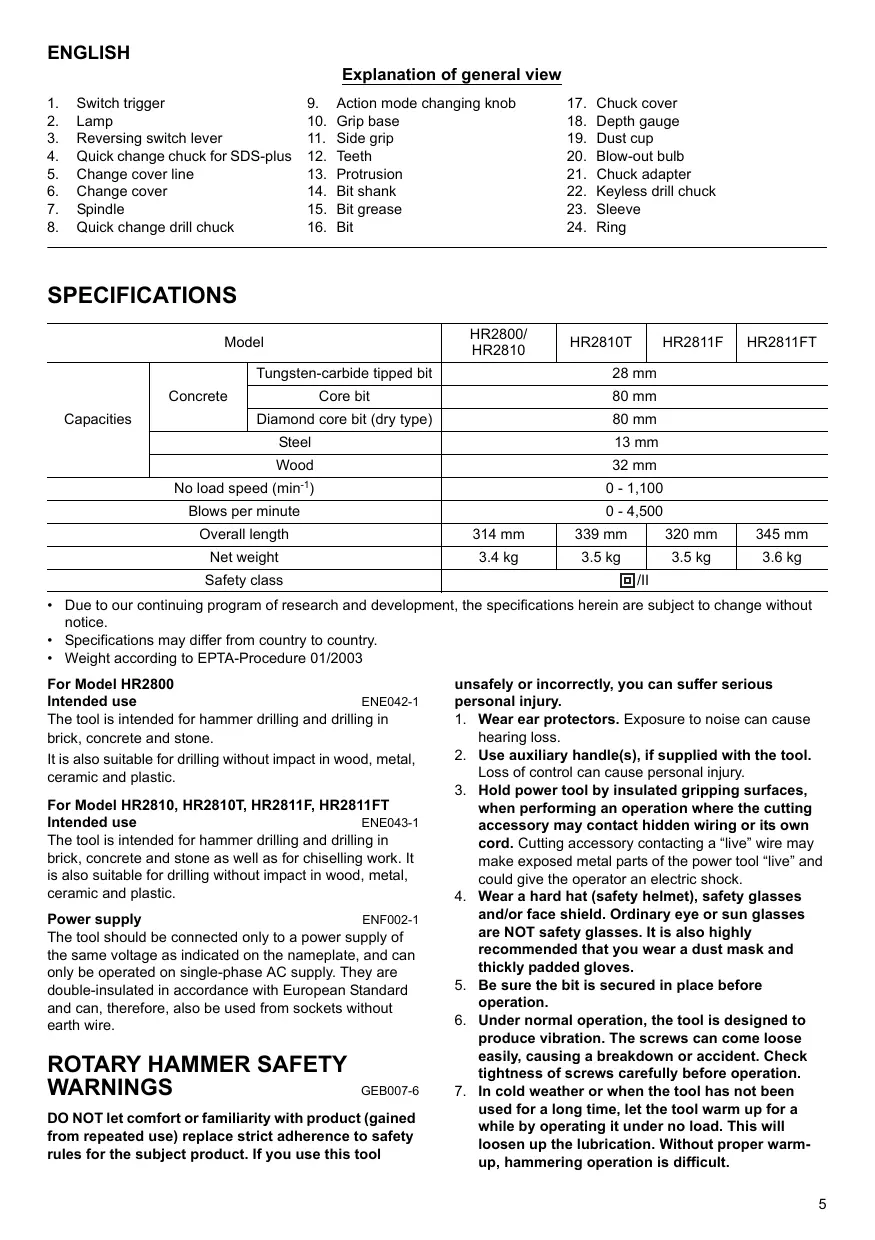 Model No./ Type: HR2800, HR2810, HR2810T,