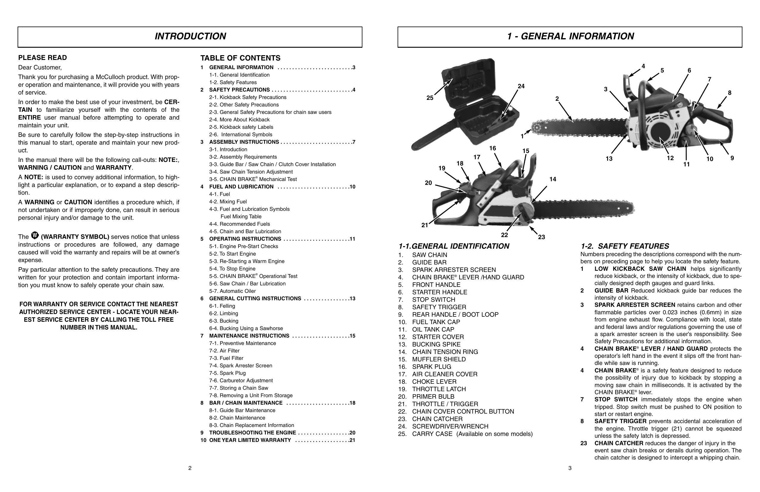 Thank you for purchasing a McCulloch product. With proper operation and maintenance, it will provide you with years of service.