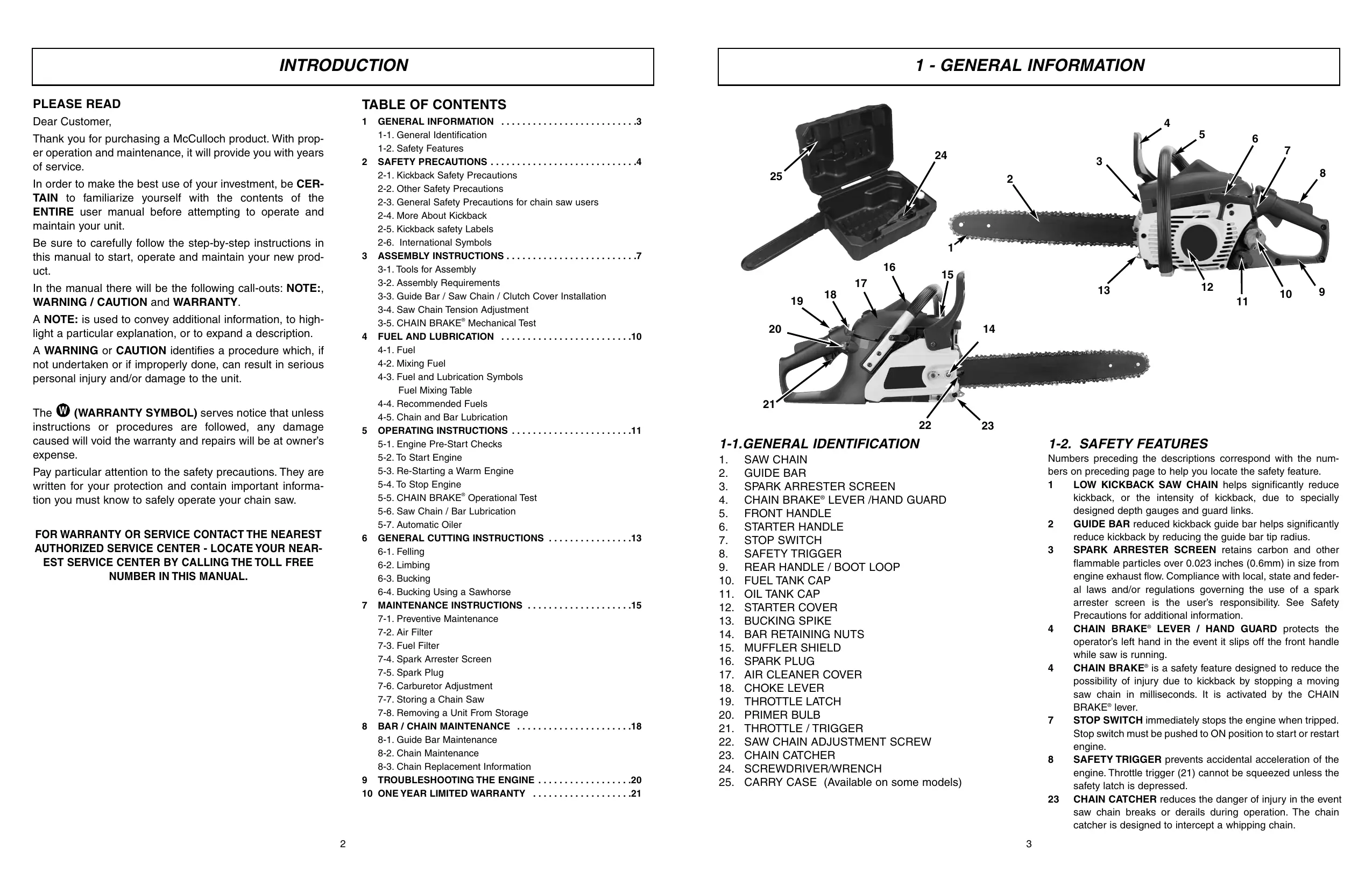 Thank you for purchasing a McCulloch product. With proper operation and maintenance, it will provide you with years of service.