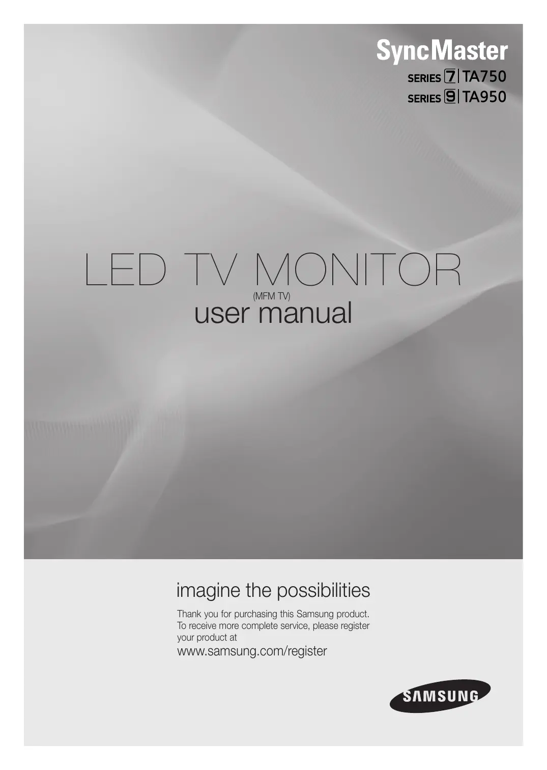 imagine the possibilities Thank you for purchasing this Samsung product. To receive more complete service, please register your product at Www.samsung.com/register SyncMaster Eur