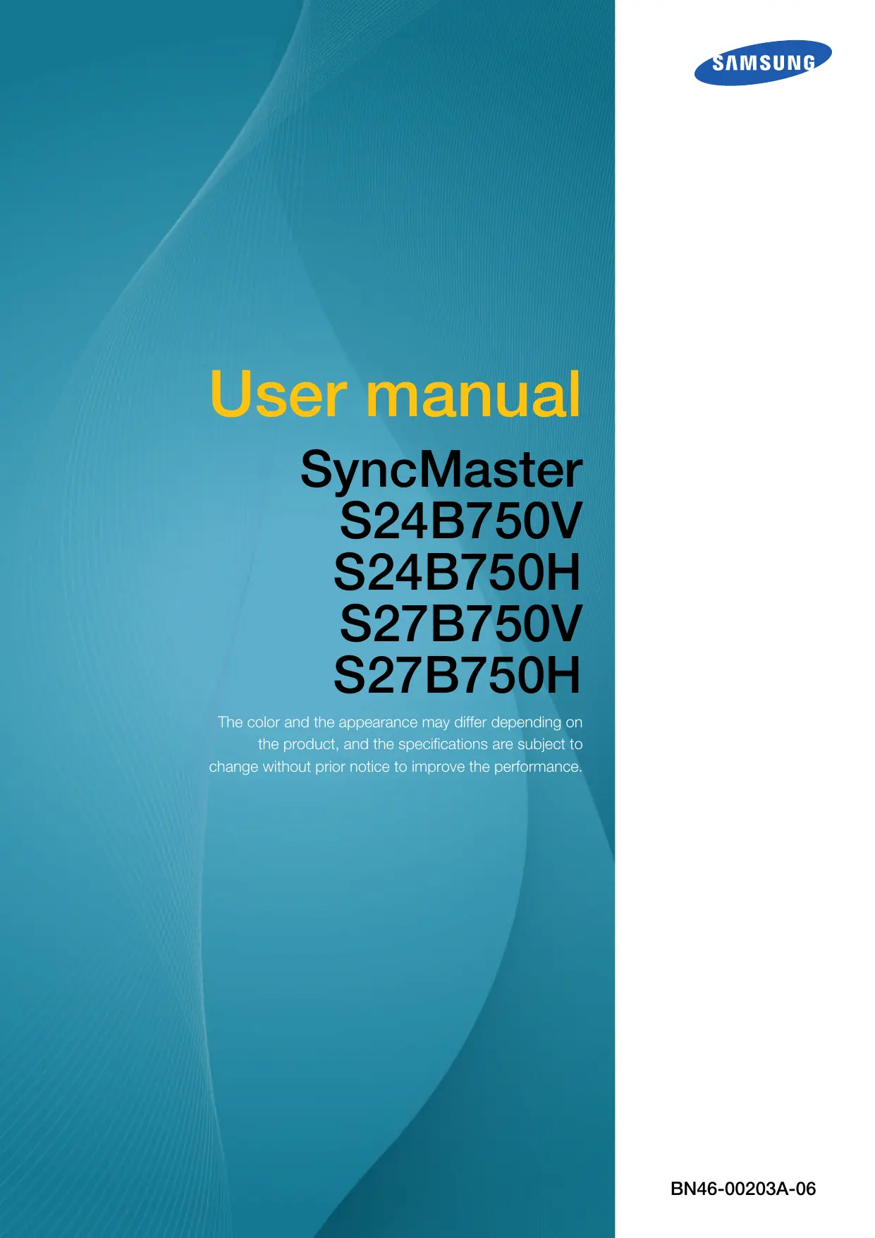 Download the instructions for your Screen/Monitor in PDF format for free! Find your manual SYNCMASTER S27B750H - SAMSUNG and take your electronic device back in hand. On this page are published all the documents necessary for the use of your device. SYNCMASTER S27B750H by SAMSUNG.