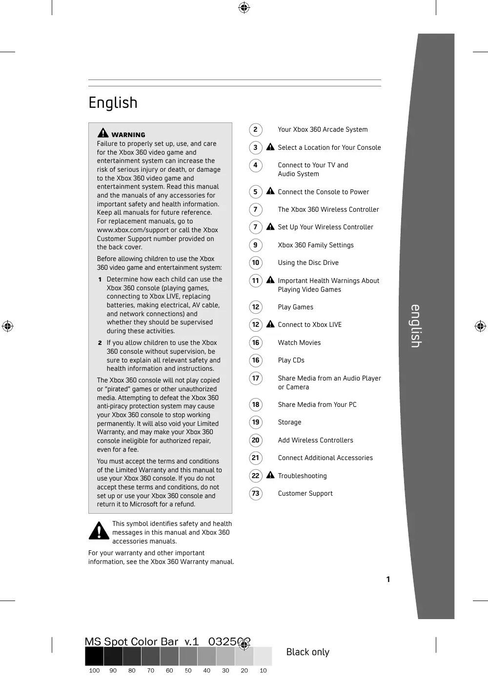 For your warranty and other important information, see the Xbox 360 Warranty manual.