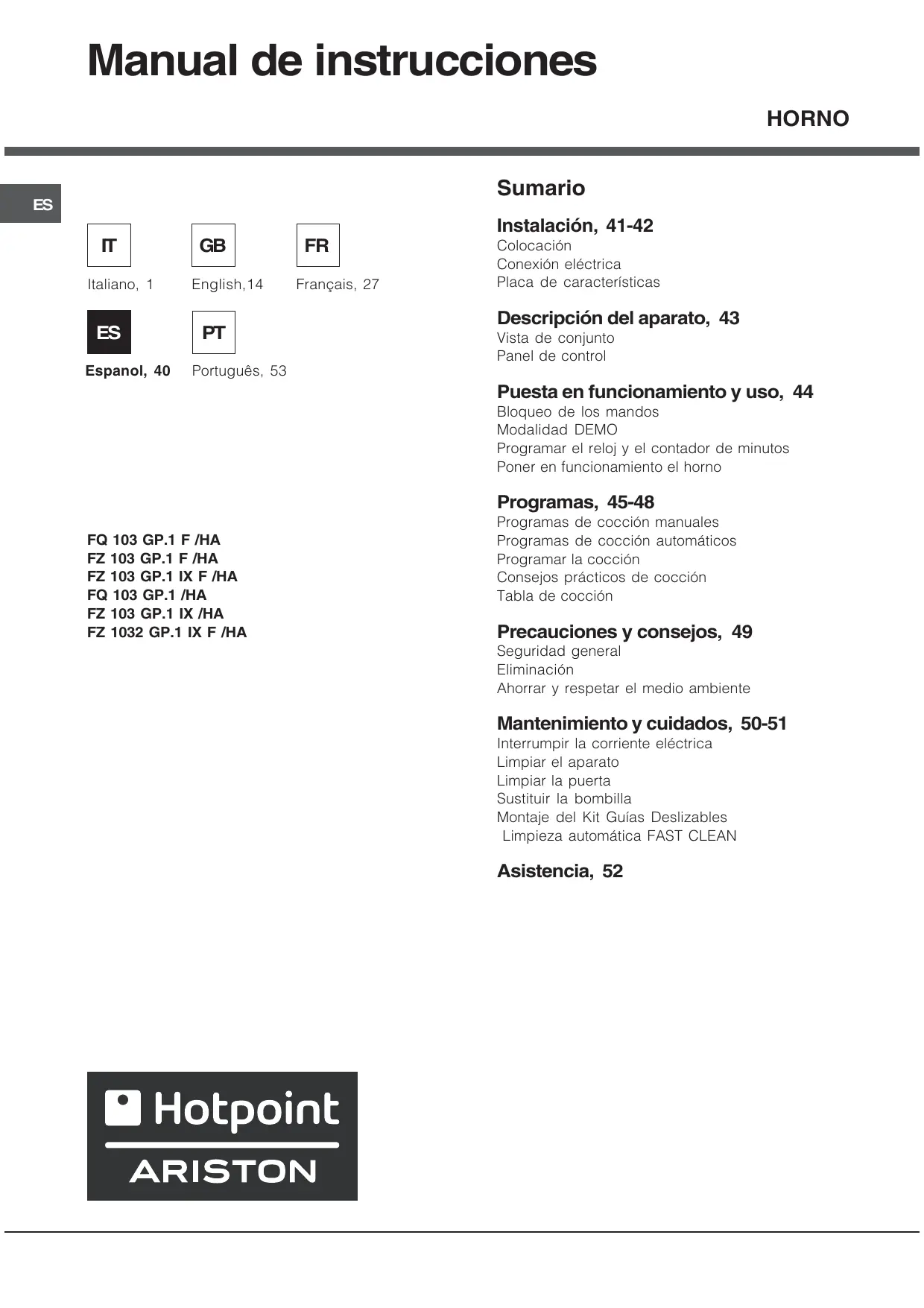MANUAL DE USUARIO FZ 103 GP.1 IX F /HA HOTPOINT-ARISTON