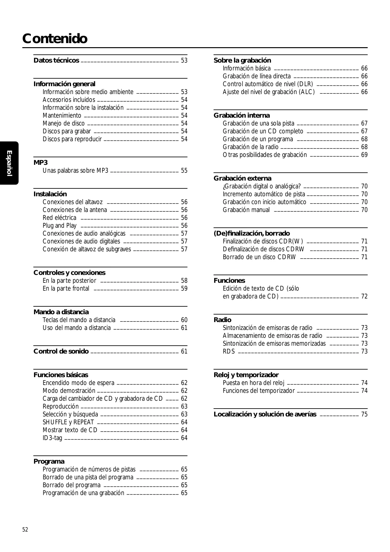 Carga del Cambiador de CD y grabadora de CD 62