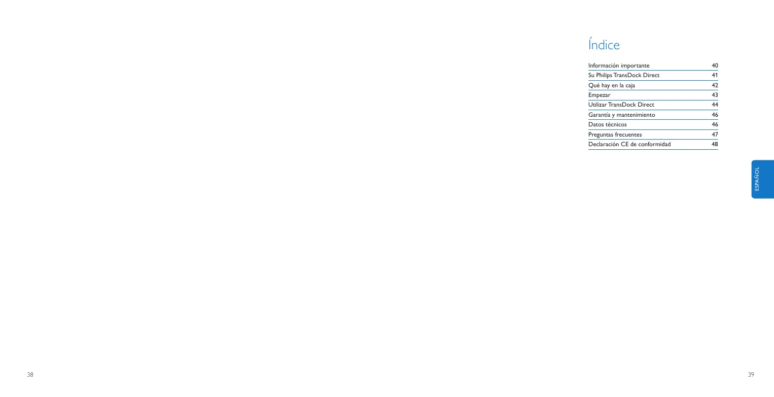 Esta sección le ayudía con la instalación de su Philips TransDock Direct porsuma vez.