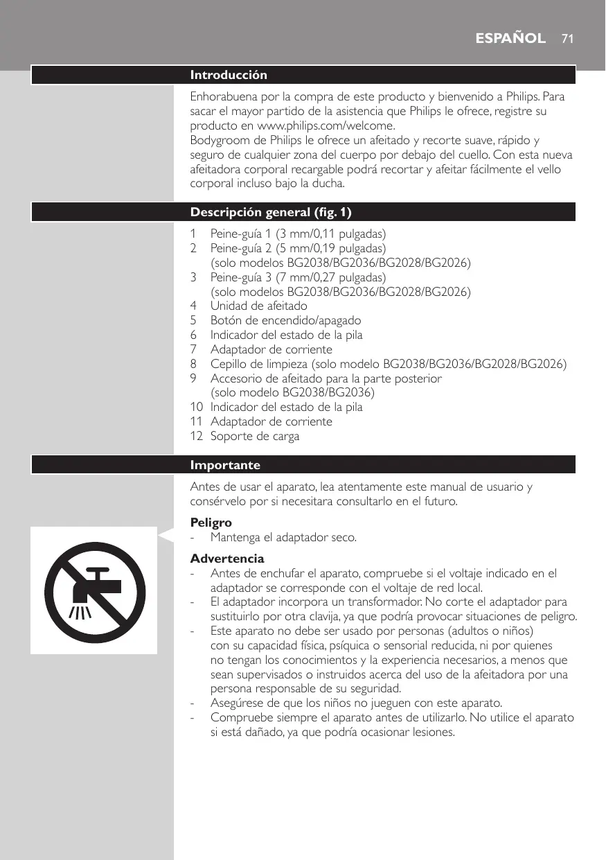 MANUAL DE USUARIO BG 2036 PHILIPS