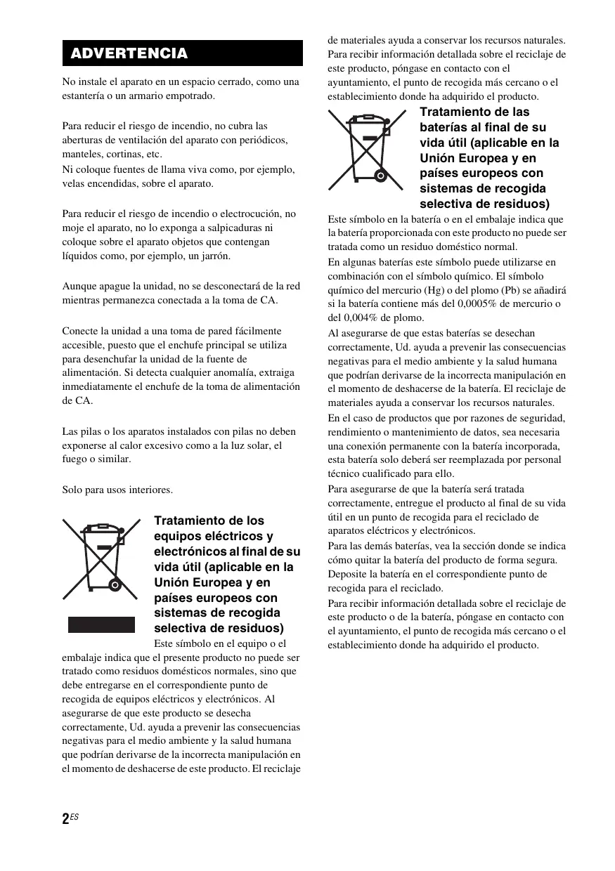 Para recibir información detallada sobre el reciclaje de este producto o de la batería,pongase en contacto con el ayuntimiento, el punto de recogida más cercano o el establecimientodonde ha adquirido el producto.