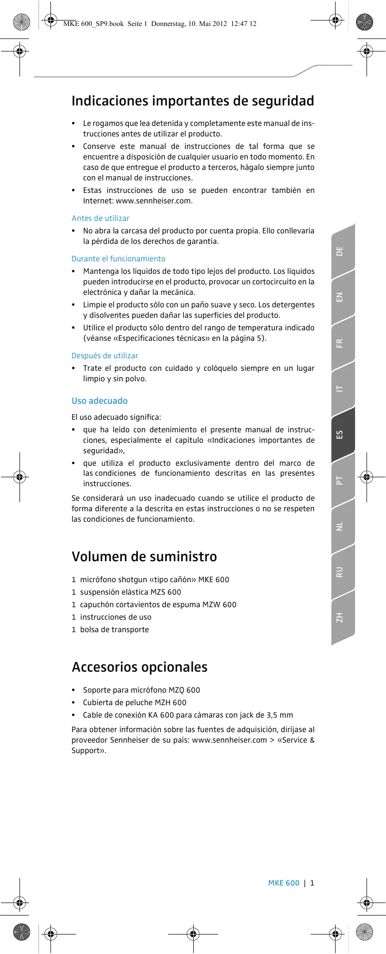 MANUAL DE USUARIO MKE 600 SENNHEISER