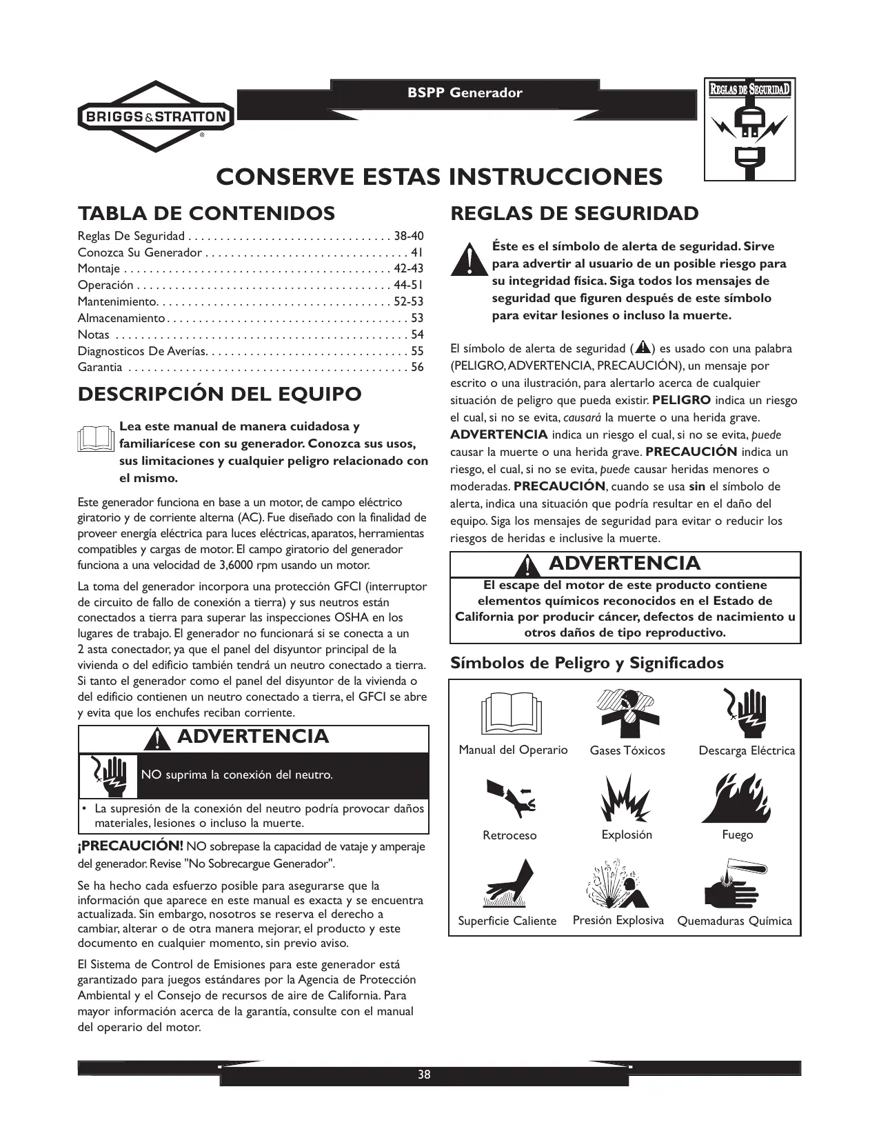 Descarga las instrucciones para tu Generador en formato PDF gratis! Encuentra tus instrucciones BRIGGS & STRATTON PRO 6500 - BRIGGS & STRATTON y toma tu dispositivo electrónico nuevamente en la mano. En esta página están publicados todos los documentos necesarios para el uso de su dispositivo. BRIGGS & STRATTON PRO 6500 de la marca BRIGGS & STRATTON.